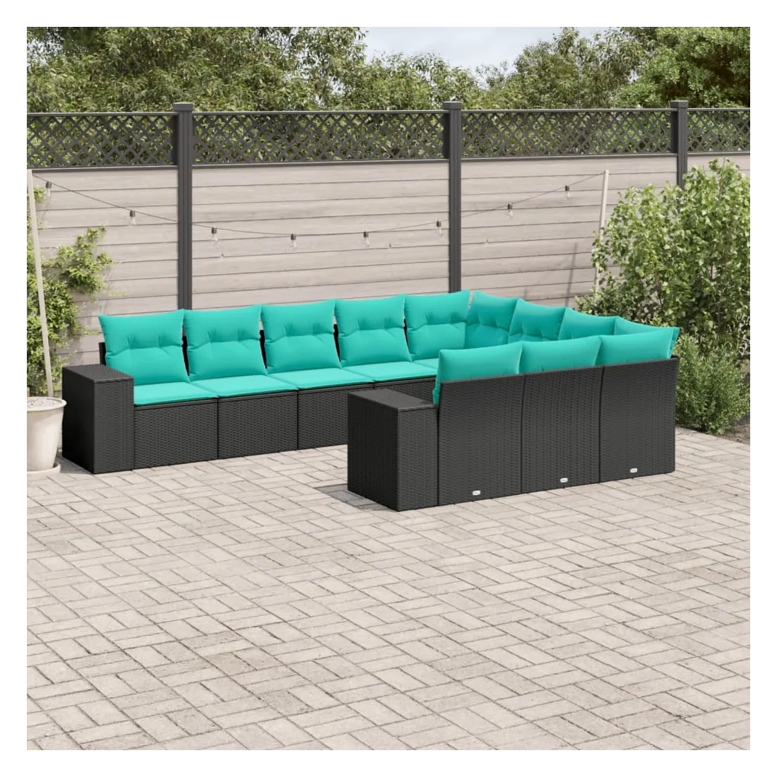 Cet ensemble de canapés de jardin est le complément parfait de votre arrière-cour, terrasse ou patio, offrant un espace confortable et accueillant pour discuter avec la famille et les amis ou simplement se détendre et profiter de l'extérieur. Matériau durable : la résine tressée, également connue sous le nom de poly rotin, est un matériau synthétique solide et nécessitant peu d'entretien qui ressemble au rotin naturel. Elle est légère, facile à nettoyer et couramment utilisée pour les meubles d'extérieur en raison de sa durabilité et de ses propriétés de résistance aux intempéries.Expérience d'assise confortable : ce mobilier d'extérieur, doté de coussins épais, offre une expérience d'assise confortable.Housse amovible et lavable : ces coussins de siège sont dotés de housses amovibles pour un lavage et un entretien faciles.Conception modulaire : cet ensemble de meubles d'extérieur a une conception modulaire, ce qui le rend complètement flexible et facile à déplacer, afin que vous puissiez créer un agencement de meubles d'extérieur personnalisé. Bon à savoir :Pour que vos meubles d'extérieur restent beaux, nous vous recommandons de les protéger avec une housse imperméable.