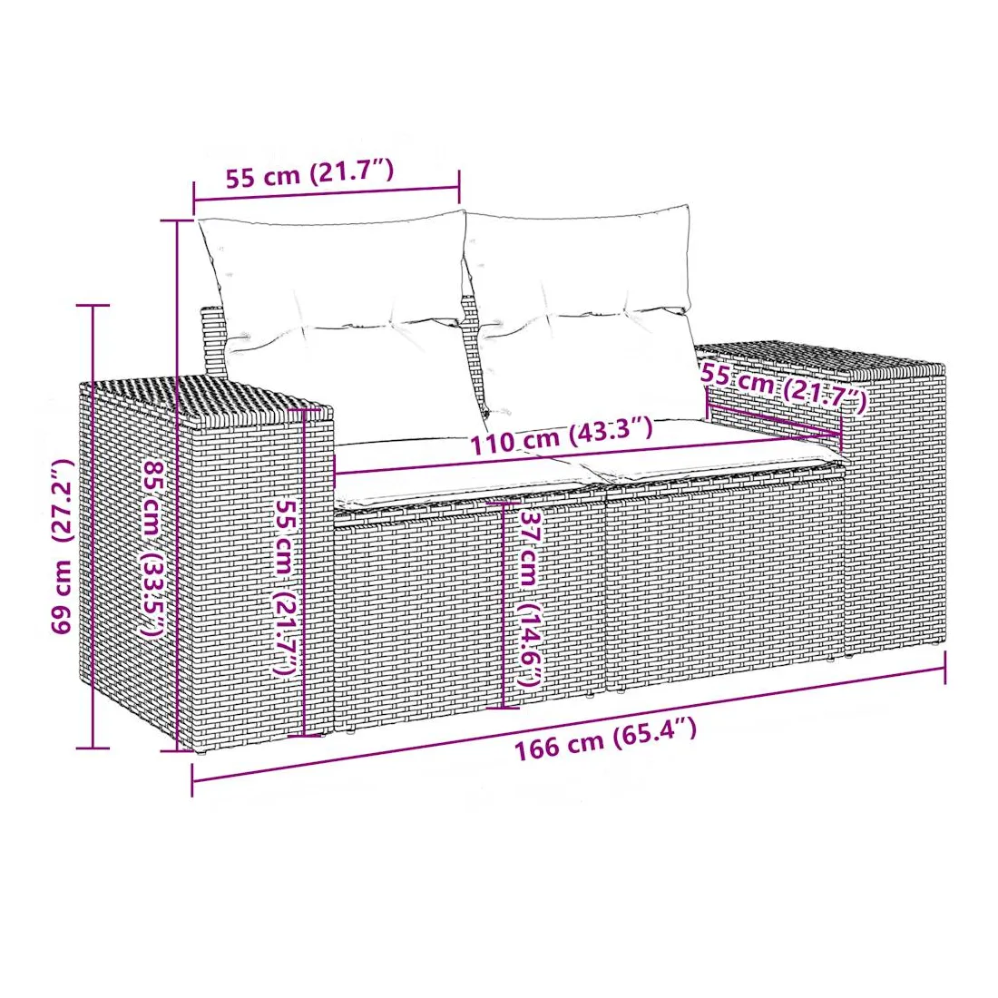- Dimensions du coussin de dossier : 55 x 45 x 13 cm (L x l x é)
