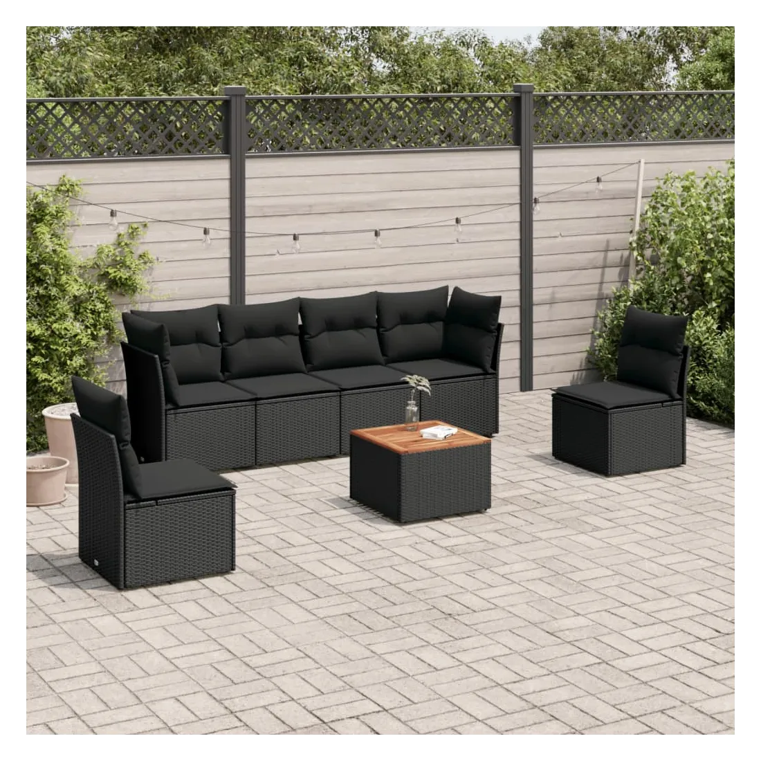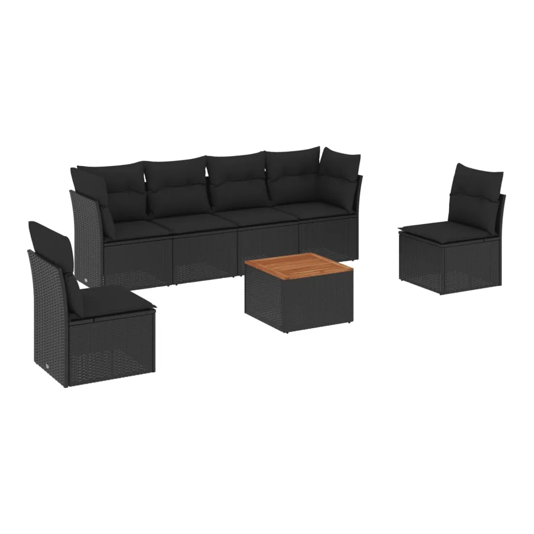 Salon de jardin 7 pcs avec coussins noir résine tressée
