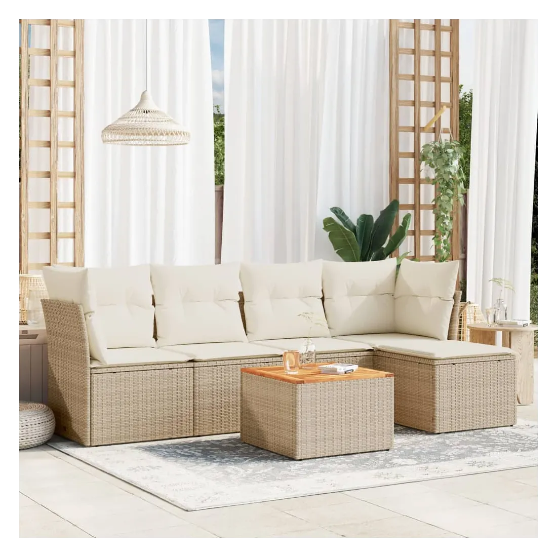 Cet ensemble de canapés de jardin est le complément parfait de votre arrière-cour, terrasse ou patio, offrant un espace confortable et accueillant pour discuter avec la famille et les amis ou simplement se détendre et profiter de l'extérieur. Matériau durable : la résine tressée, également connue sous le nom de poly rotin, est un matériau synthétique solide et nécessitant peu d'entretien qui ressemble au rotin naturel. Il est léger, facile à nettoyer et couramment utilisé pour les meubles d'extérieur en raison de sa durabilité et de ses propriétés de résistance aux intempéries.Expérience d'assise confortable : ce mobilier d'extérieur, doté de coussins épais, offre une expérience d'assise confortable.Dessus stable et facile à nettoyer : cette table de jardin a un dessus en bois d'acacia robuste, durable et facile à nettoyer avec un chiffon humide.Housse amovible et lavable : ces coussins de siège sont dotés de housses amovibles pour un lavage et un entretien faciles.Conception modulaire : cet ensemble de meubles d'extérieur a une conception modulaire, ce qui le rend complètement flexible et facile à déplacer, afin que vous puissiez créer un agencement de meubles d'extérieur personnalisé. Bon à savoir :Pour que vos meubles d'extérieur restent beaux, nous vous recommandons de les protéger avec une housse imperméable.
