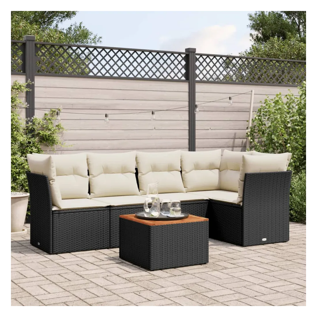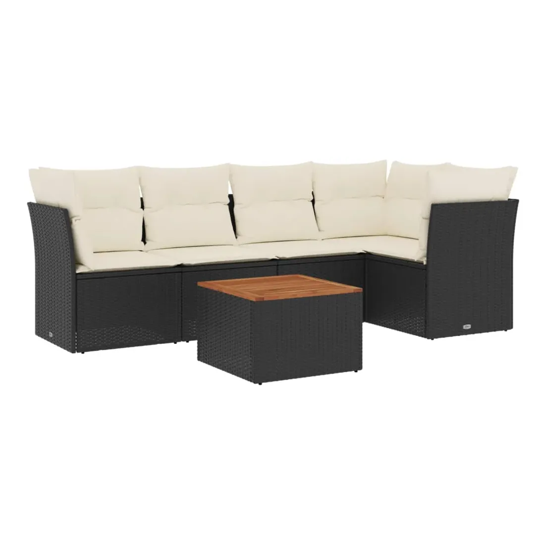 Salon de jardin 6 pcs avec coussins noir résine tressée
