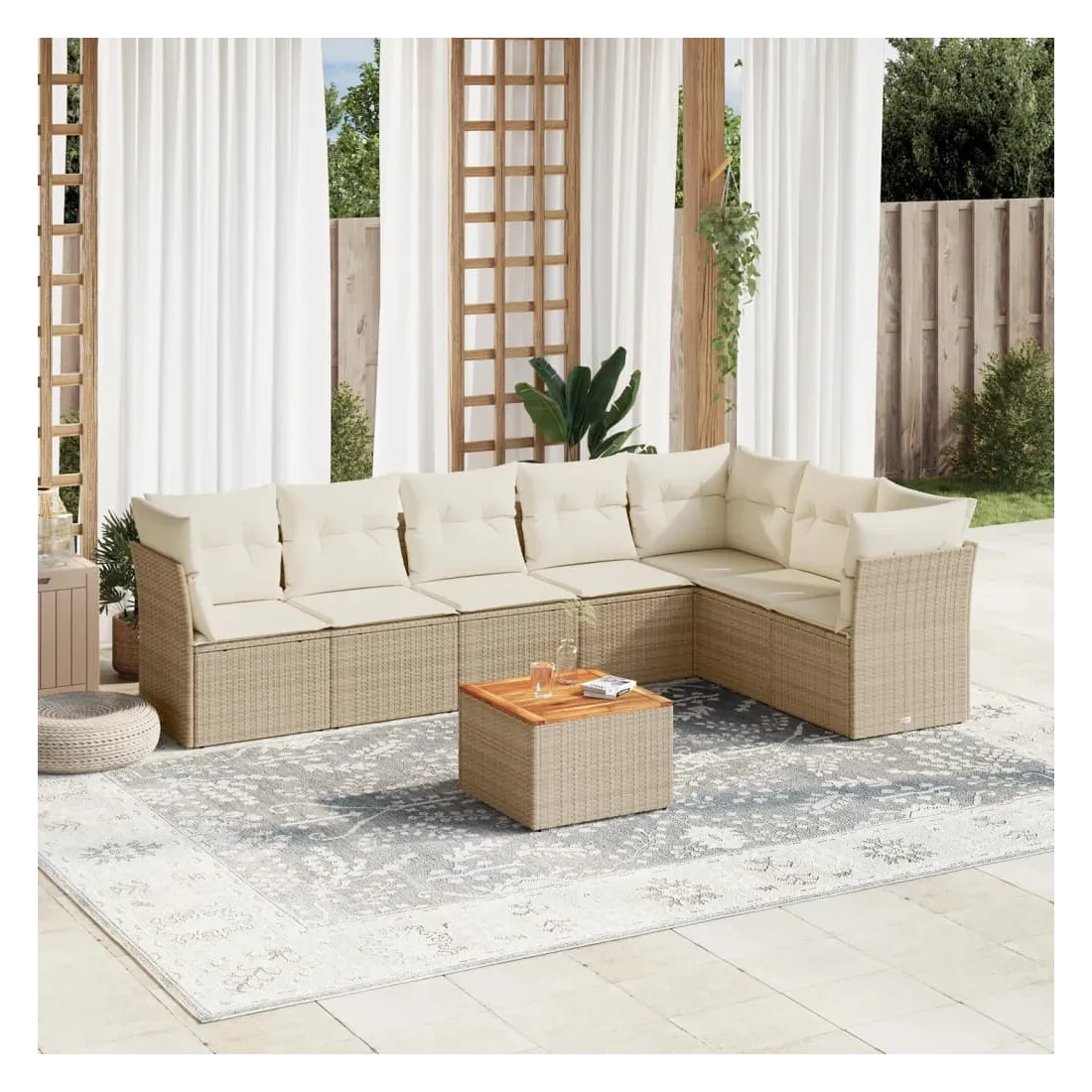 Cet ensemble de canapés de jardin est le complément parfait de votre arrière-cour, terrasse ou patio, offrant un espace confortable et accueillant pour discuter avec la famille et les amis ou simplement se détendre et profiter de l'extérieur. Matériau durable : la résine tressée, également connue sous le nom de poly rotin, est un matériau synthétique solide et nécessitant peu d'entretien qui ressemble au rotin naturel. Il est léger, facile à nettoyer et couramment utilisé pour les meubles d'extérieur en raison de sa durabilité et de ses propriétés de résistance aux intempéries.Expérience d'assise confortable : ce mobilier d'extérieur, doté de coussins épais, offre une expérience d'assise confortable.Dessus stable et facile à nettoyer : cette table de jardin a un dessus en bois d'acacia robuste, durable et facile à nettoyer avec un chiffon humide.Housse amovible et lavable : ces coussins de siège sont dotés de housses amovibles pour un lavage et un entretien faciles.Conception modulaire : cet ensemble de meubles d'extérieur a une conception modulaire, ce qui le rend complètement flexible et facile à déplacer, afin que vous puissiez créer un agencement de meubles d'extérieur personnalisé. Bon à savoir :Pour que vos meubles d'extérieur restent beaux, nous vous recommandons de les protéger avec une housse imperméable.