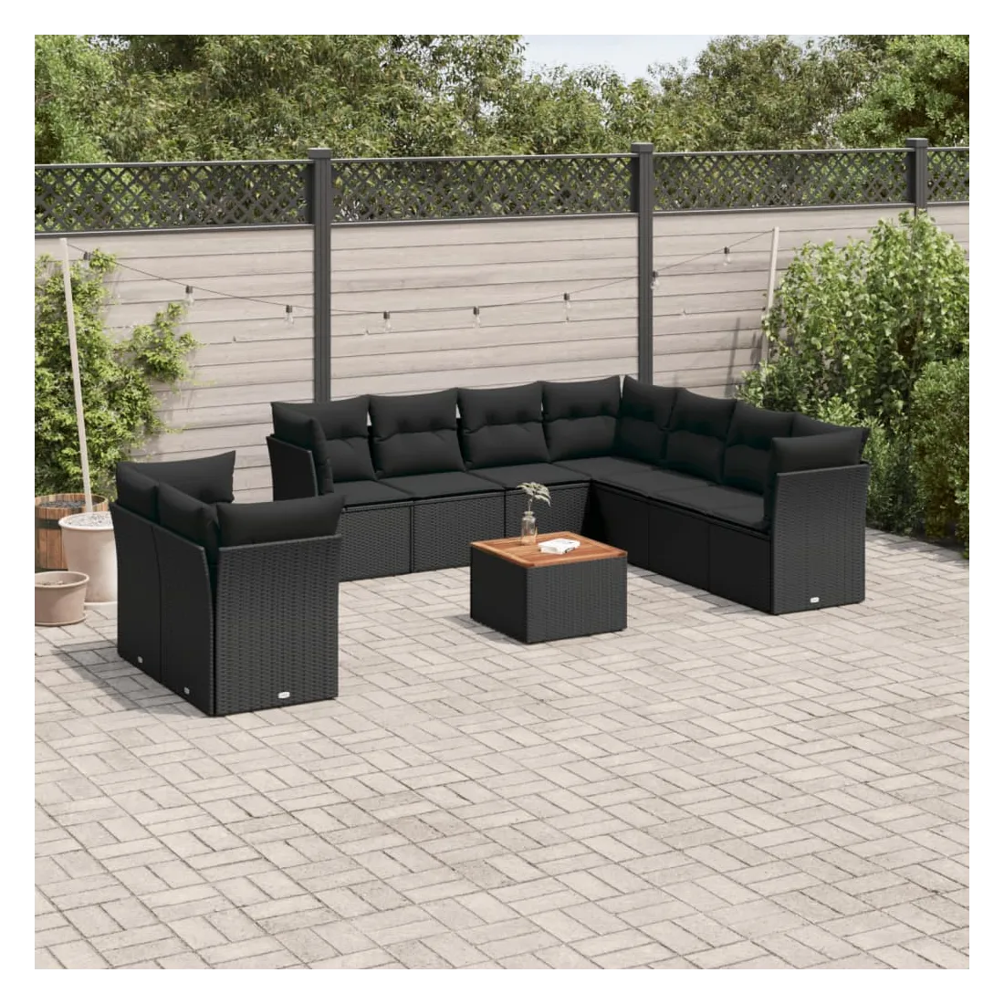Cet ensemble de canapés de jardin est le complément parfait de votre arrière-cour, terrasse ou patio, offrant un espace confortable et accueillant pour discuter avec la famille et les amis ou simplement se détendre et profiter de l'extérieur. Matériau durable : la résine tressée, également connue sous le nom de poly rotin, est un matériau synthétique solide et nécessitant peu d'entretien qui ressemble au rotin naturel. Il est léger, facile à nettoyer et couramment utilisé pour les meubles d'extérieur en raison de sa durabilité et de ses propriétés de résistance aux intempéries.Expérience d'assise confortable : ce mobilier d'extérieur, doté de coussins épais, offre une expérience d'assise confortable.Dessus stable et facile à nettoyer : cette table de jardin a un dessus en bois d'acacia robuste, durable et facile à nettoyer avec un chiffon humide.Housse amovible et lavable : ces coussins de siège sont dotés de housses amovibles pour un lavage et un entretien faciles.Conception modulaire : cet ensemble de meubles d'extérieur a une conception modulaire, ce qui le rend complètement flexible et facile à déplacer, afin que vous puissiez créer un agencement de meubles d'extérieur personnalisé. Bon à savoir :Pour que vos meubles d'extérieur restent beaux, nous vous recommandons de les protéger avec une housse imperméable.