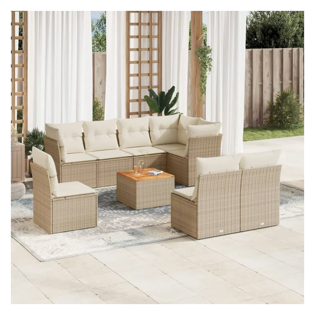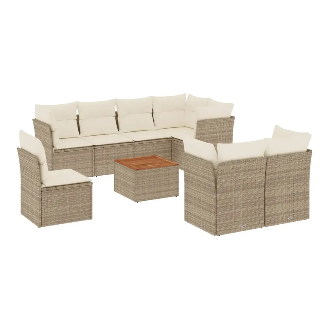 Salon de jardin avec coussins 9 pcs beige résine tressée