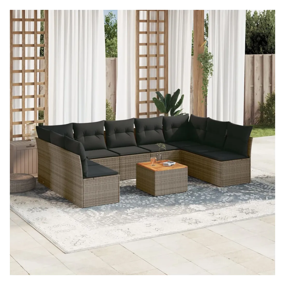 Cet ensemble de canapés de jardin est le complément parfait de votre arrière-cour, terrasse ou patio, offrant un espace confortable et accueillant pour discuter avec la famille et les amis ou simplement se détendre et profiter de l'extérieur. Matériau durable : la résine tressée, également connue sous le nom de poly rotin, est un matériau synthétique solide et nécessitant peu d'entretien qui ressemble au rotin naturel. Il est léger, facile à nettoyer et couramment utilisé pour les meubles d'extérieur en raison de sa durabilité et de ses propriétés de résistance aux intempéries.Expérience d'assise confortable : ce mobilier d'extérieur, doté de coussins épais, offre une expérience d'assise confortable.Dessus stable et facile à nettoyer : cette table de jardin a un dessus en bois d'acacia robuste, durable et facile à nettoyer avec un chiffon humide.Housse amovible et lavable : ces coussins de siège sont dotés de housses amovibles pour un lavage et un entretien faciles.Conception modulaire : cet ensemble de meubles d'extérieur a une conception modulaire, ce qui le rend complètement flexible et facile à déplacer, afin que vous puissiez créer un agencement de meubles d'extérieur personnalisé. Bon à savoir :Pour que vos meubles d'extérieur restent beaux, nous vous recommandons de les protéger avec une housse imperméable.