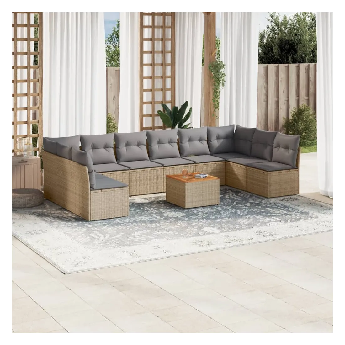 Cet ensemble de canapés de jardin est le complément parfait de votre arrière-cour, terrasse ou patio, offrant un espace confortable et accueillant pour discuter avec la famille et les amis ou simplement se détendre et profiter de l'extérieur. Matériau durable : la résine tressée, également connue sous le nom de poly rotin, est un matériau synthétique solide et nécessitant peu d'entretien qui ressemble au rotin naturel. Il est léger, facile à nettoyer et couramment utilisé pour les meubles d'extérieur en raison de sa durabilité et de ses propriétés de résistance aux intempéries.Expérience d'assise confortable : ce mobilier d'extérieur, doté de coussins épais, offre une expérience d'assise confortable.Dessus stable et facile à nettoyer : cette table de jardin a un dessus en bois d'acacia robuste, durable et facile à nettoyer avec un chiffon humide.Housse amovible et lavable : ces coussins de siège sont dotés de housses amovibles pour un lavage et un entretien faciles.Conception modulaire : cet ensemble de meubles d'extérieur a une conception modulaire, ce qui le rend complètement flexible et facile à déplacer, afin que vous puissiez créer un agencement de meubles d'extérieur personnalisé. Bon à savoir :Pour que vos meubles d'extérieur restent beaux, nous vous recommandons de les protéger avec une housse imperméable.