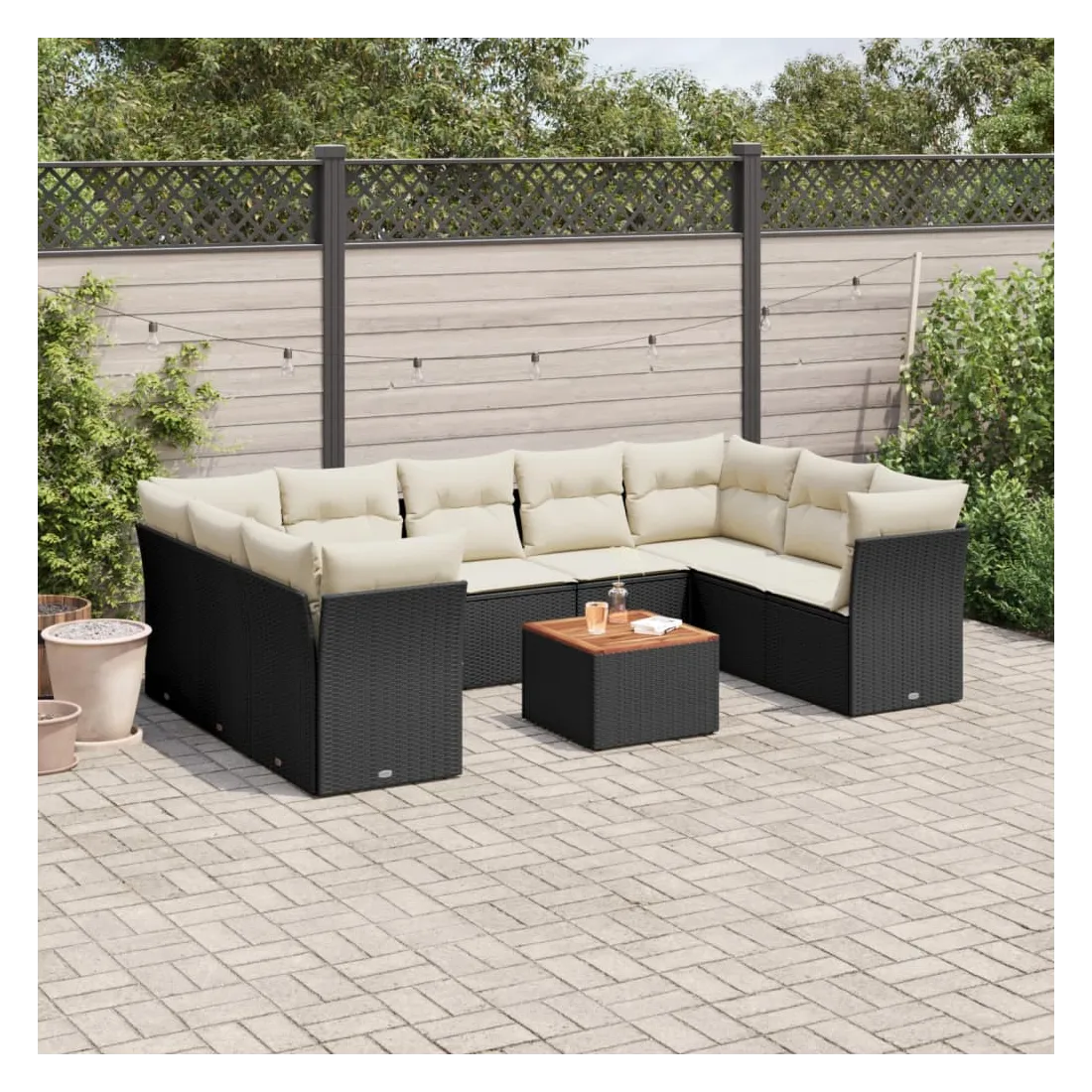 Cet ensemble de canapés de jardin est le complément parfait de votre arrière-cour, terrasse ou patio, offrant un espace confortable et accueillant pour discuter avec la famille et les amis ou simplement se détendre et profiter de l'extérieur. Matériau durable : la résine tressée, également connue sous le nom de poly rotin, est un matériau synthétique solide et nécessitant peu d'entretien qui ressemble au rotin naturel. Il est léger, facile à nettoyer et couramment utilisé pour les meubles d'extérieur en raison de sa durabilité et de ses propriétés de résistance aux intempéries.Expérience d'assise confortable : ce mobilier d'extérieur, doté de coussins épais, offre une expérience d'assise confortable.Dessus stable et facile à nettoyer : cette table de jardin a un dessus en bois d'acacia robuste, durable et facile à nettoyer avec un chiffon humide.Housse amovible et lavable : ces coussins de siège sont dotés de housses amovibles pour un lavage et un entretien faciles.Conception modulaire : cet ensemble de meubles d'extérieur a une conception modulaire, ce qui le rend complètement flexible et facile à déplacer, afin que vous puissiez créer un agencement de meubles d'extérieur personnalisé. Bon à savoir :Pour que vos meubles d'extérieur restent beaux, nous vous recommandons de les protéger avec une housse imperméable.