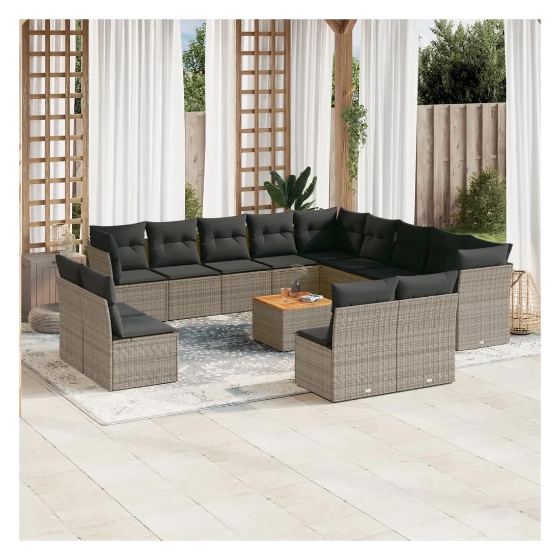 Cet ensemble de canapés de jardin est le complément parfait de votre arrière-cour, terrasse ou patio, offrant un espace confortable et accueillant pour discuter avec la famille et les amis ou simplement se détendre et profiter de l'extérieur. Matériau durable : la résine tressée, également connue sous le nom de poly rotin, est un matériau synthétique solide et nécessitant peu d'entretien qui ressemble au rotin naturel. Il est léger, facile à nettoyer et couramment utilisé pour les meubles d'extérieur en raison de sa durabilité et de ses propriétés de résistance aux intempéries.Expérience d'assise confortable : ce mobilier d'extérieur, doté de coussins épais, offre une expérience d'assise confortable.Dessus stable et facile à nettoyer : cette table de jardin a un dessus en bois d'acacia robuste, durable et facile à nettoyer avec un chiffon humide.Housse amovible et lavable : ces coussins de siège sont dotés de housses amovibles pour un lavage et un entretien faciles.Conception modulaire : cet ensemble de meubles d'extérieur a une conception modulaire, ce qui le rend complètement flexible et facile à déplacer, afin que vous puissiez créer un agencement de meubles d'extérieur personnalisé. Bon à savoir :Pour que vos meubles d'extérieur restent beaux, nous vous recommandons de les protéger avec une housse imperméable.