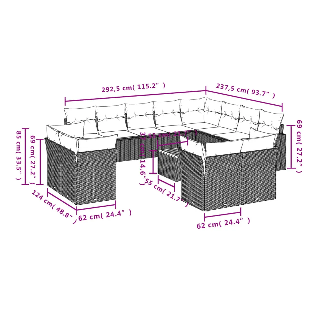 - Dimensions du coussin de dossier : 55 x 45 x 13 cm (L x l x é)