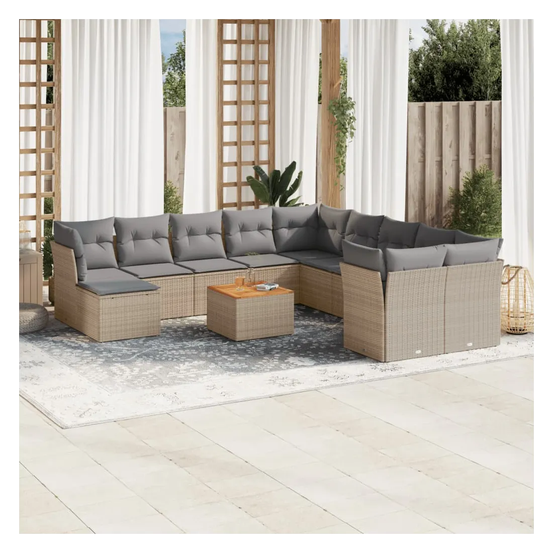 Cet ensemble de canapés de jardin est le complément parfait de votre arrière-cour, terrasse ou patio, offrant un espace confortable et accueillant pour discuter avec la famille et les amis ou simplement se détendre et profiter de l'extérieur. Matériau durable : la résine tressée, également connue sous le nom de poly rotin, est un matériau synthétique solide et nécessitant peu d'entretien qui ressemble au rotin naturel. Il est léger, facile à nettoyer et couramment utilisé pour les meubles d'extérieur en raison de sa durabilité et de ses propriétés de résistance aux intempéries.Expérience d'assise confortable : ce mobilier d'extérieur, doté de coussins épais, offre une expérience d'assise confortable.Dessus stable et facile à nettoyer : cette table de jardin a un dessus en bois d'acacia robuste, durable et facile à nettoyer avec un chiffon humide.Housse amovible et lavable : ces coussins de siège sont dotés de housses amovibles pour un lavage et un entretien faciles.Conception modulaire : cet ensemble de meubles d'extérieur a une conception modulaire, ce qui le rend complètement flexible et facile à déplacer, afin que vous puissiez créer un agencement de meubles d'extérieur personnalisé. Bon à savoir :Pour que vos meubles d'extérieur restent beaux, nous vous recommandons de les protéger avec une housse imperméable.