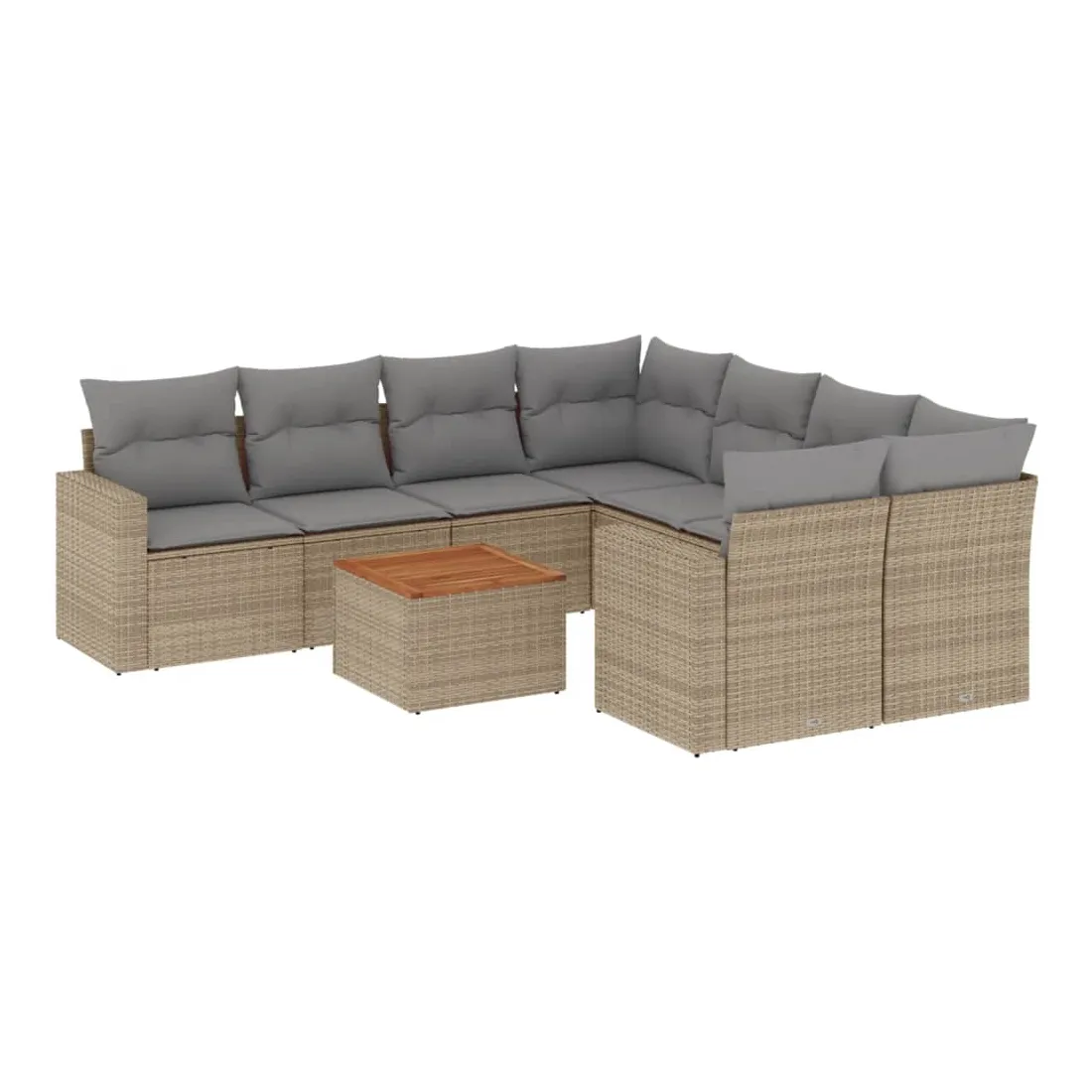 Cet ensemble de canapés de jardin est le complément parfait de votre arrière-cour, terrasse ou patio, offrant un espace confortable et accueillant pour discuter avec la famille et les amis ou simplement se détendre et profiter de l'extérieur. Matériau durable : la résine tressée, également connue sous le nom de poly rotin, est un matériau synthétique solide et nécessitant peu d'entretien qui ressemble au rotin naturel. Il est léger, facile à nettoyer et couramment utilisé pour les meubles d'extérieur en raison de sa durabilité et de ses propriétés de résistance aux intempéries.Expérience d'assise confortable : ce mobilier d'extérieur, doté de coussins épais, offre une expérience d'assise confortable.Dessus stable et facile à nettoyer : cette table de jardin a un dessus en bois d'acacia robuste, durable et facile à nettoyer avec un chiffon humide.Housse amovible et lavable : ces coussins de siège sont dotés de housses amovibles pour un lavage et un entretien faciles.Conception modulaire : cet ensemble de meubles d'extérieur a une conception modulaire, ce qui le rend complètement flexible et facile à déplacer, afin que vous puissiez créer un agencement de meubles d'extérieur personnalisé. Bon à savoir :Pour que vos meubles d'extérieur restent beaux, nous vous recommandons de les protéger avec une housse imperméable.