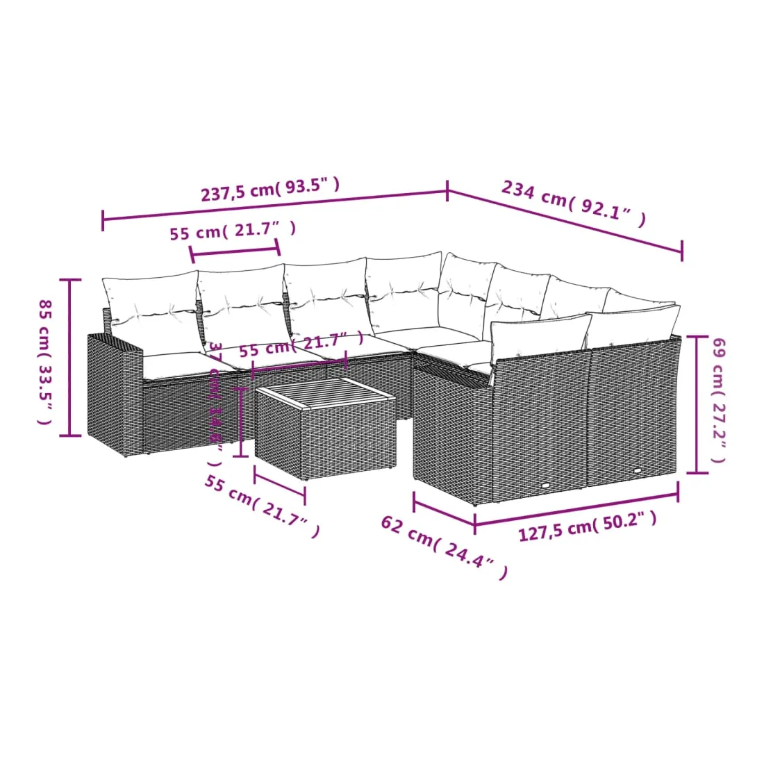 - Dimensions du coussin de dossier : 55 x 45 x 13 cm (L x l x é)
