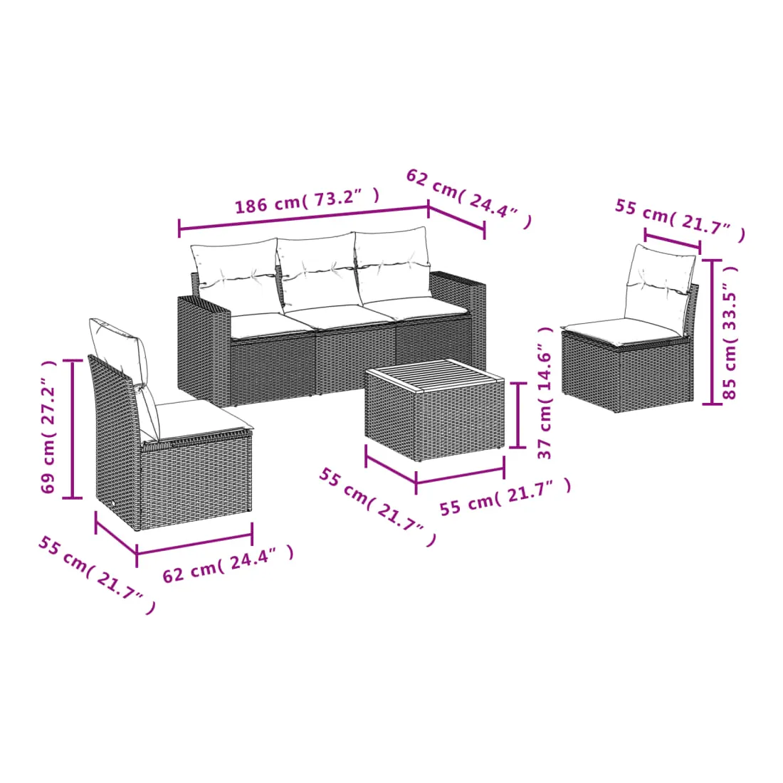 - Dimensions : 55 x 55 x 37 cm (L x l x H)