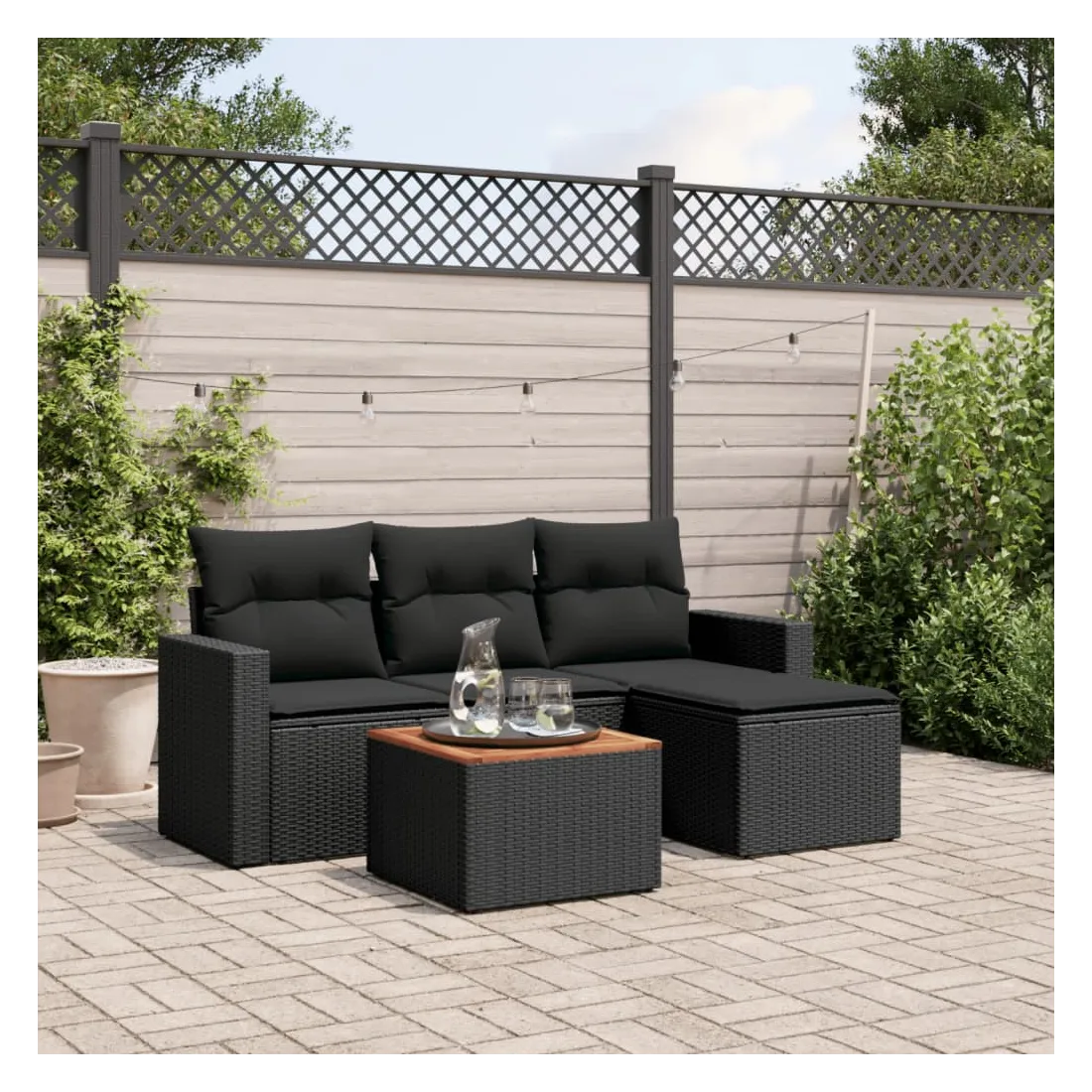 Cet ensemble de canapés de jardin est le complément parfait de votre arrière-cour, terrasse ou patio, offrant un espace confortable et accueillant pour discuter avec la famille et les amis ou simplement se détendre et profiter de l'extérieur. Matériau durable : la résine tressée, également connue sous le nom de poly rotin, est un matériau synthétique solide et nécessitant peu d'entretien qui ressemble au rotin naturel. Il est léger, facile à nettoyer et couramment utilisé pour les meubles d'extérieur en raison de sa durabilité et de ses propriétés de résistance aux intempéries.Expérience d'assise confortable : ce mobilier d'extérieur, doté de coussins épais, offre une expérience d'assise confortable.Dessus stable et facile à nettoyer : cette table de jardin a un dessus en bois d'acacia robuste, durable et facile à nettoyer avec un chiffon humide.Housse amovible et lavable : ces coussins de siège sont dotés de housses amovibles pour un lavage et un entretien faciles.Conception modulaire : cet ensemble de meubles d'extérieur a une conception modulaire, ce qui le rend complètement flexible et facile à déplacer, afin que vous puissiez créer un agencement de meubles d'extérieur personnalisé. Bon à savoir :Pour que vos meubles d'extérieur restent beaux, nous vous recommandons de les protéger avec une housse imperméable.