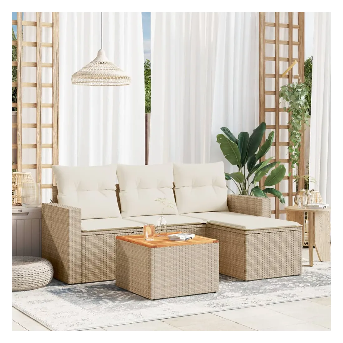 Cet ensemble de canapés de jardin est le complément parfait de votre arrière-cour, terrasse ou patio, offrant un espace confortable et accueillant pour discuter avec la famille et les amis ou simplement se détendre et profiter de l'extérieur. Matériau durable : la résine tressée, également connue sous le nom de poly rotin, est un matériau synthétique solide et nécessitant peu d'entretien qui ressemble au rotin naturel. Il est léger, facile à nettoyer et couramment utilisé pour les meubles d'extérieur en raison de sa durabilité et de ses propriétés de résistance aux intempéries.Expérience d'assise confortable : ce mobilier d'extérieur, doté de coussins épais, offre une expérience d'assise confortable.Dessus stable et facile à nettoyer : cette table de jardin a un dessus en bois d'acacia robuste, durable et facile à nettoyer avec un chiffon humide.Housse amovible et lavable : ces coussins de siège sont dotés de housses amovibles pour un lavage et un entretien faciles.Conception modulaire : cet ensemble de meubles d'extérieur a une conception modulaire, ce qui le rend complètement flexible et facile à déplacer, afin que vous puissiez créer un agencement de meubles d'extérieur personnalisé. Bon à savoir :Pour que vos meubles d'extérieur restent beaux, nous vous recommandons de les protéger avec une housse imperméable.