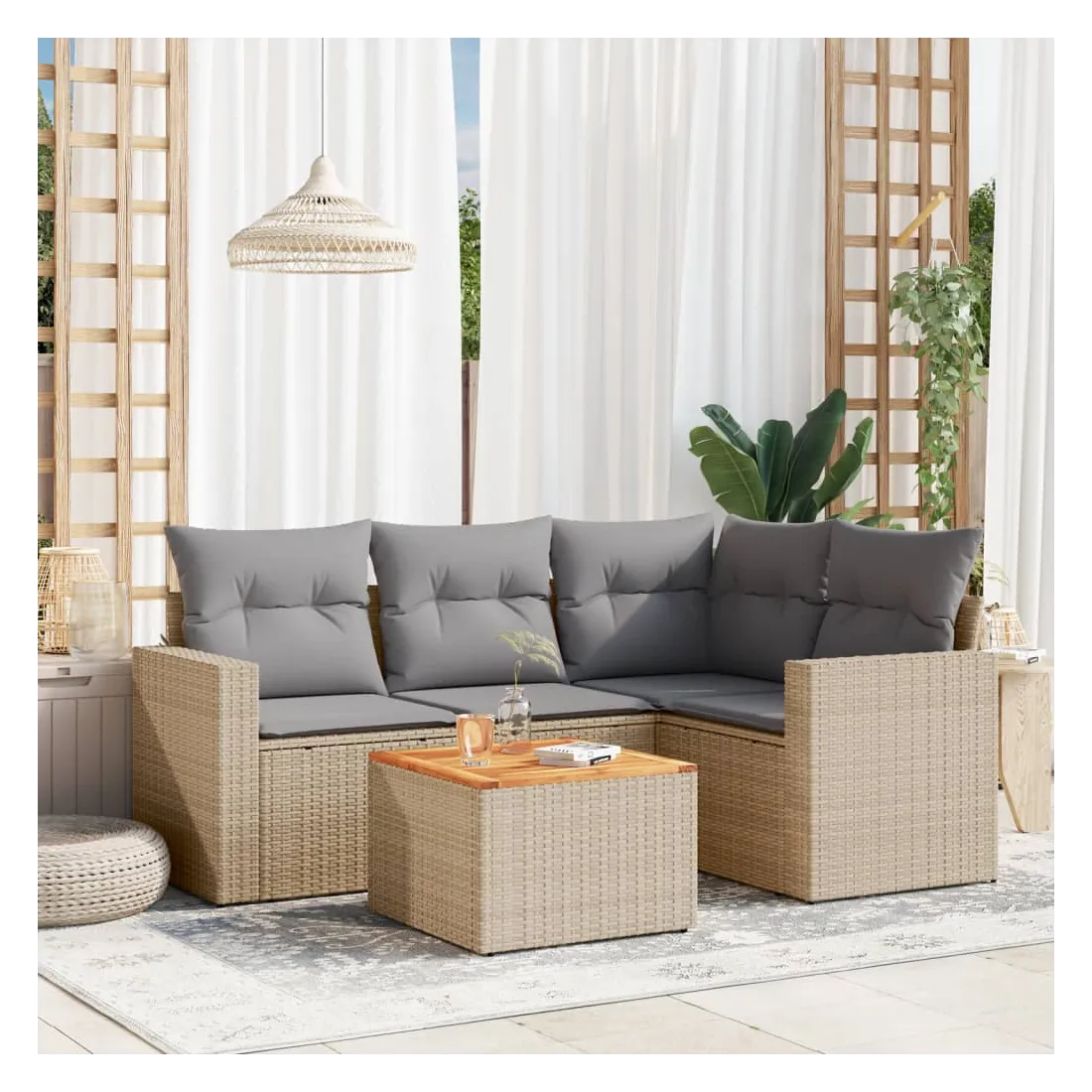 Cet ensemble de canapés de jardin est le complément parfait de votre arrière-cour, terrasse ou patio, offrant un espace confortable et accueillant pour discuter avec la famille et les amis ou simplement se détendre et profiter de l'extérieur. Matériau durable : la résine tressée, également connue sous le nom de poly rotin, est un matériau synthétique solide et nécessitant peu d'entretien qui ressemble au rotin naturel. Il est léger, facile à nettoyer et couramment utilisé pour les meubles d'extérieur en raison de sa durabilité et de ses propriétés de résistance aux intempéries.Expérience d'assise confortable : ce mobilier d'extérieur, doté de coussins épais, offre une expérience d'assise confortable.Dessus stable et facile à nettoyer : cette table de jardin a un dessus en bois d'acacia robuste, durable et facile à nettoyer avec un chiffon humide.Housse amovible et lavable : ces coussins de siège sont dotés de housses amovibles pour un lavage et un entretien faciles.Conception modulaire : cet ensemble de meubles d'extérieur a une conception modulaire, ce qui le rend complètement flexible et facile à déplacer, afin que vous puissiez créer un agencement de meubles d'extérieur personnalisé. Bon à savoir :Pour que vos meubles d'extérieur restent beaux, nous vous recommandons de les protéger avec une housse imperméable.
