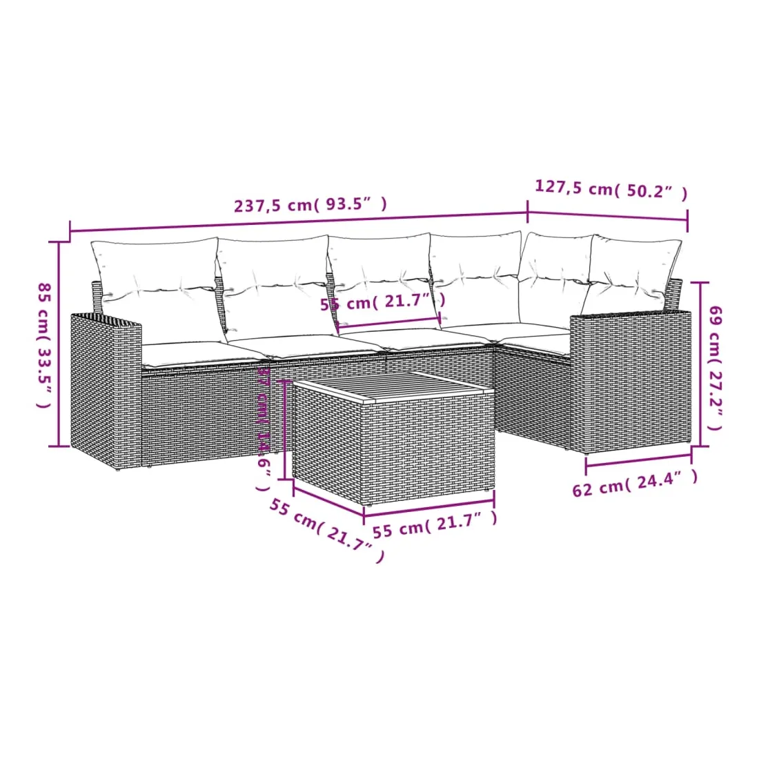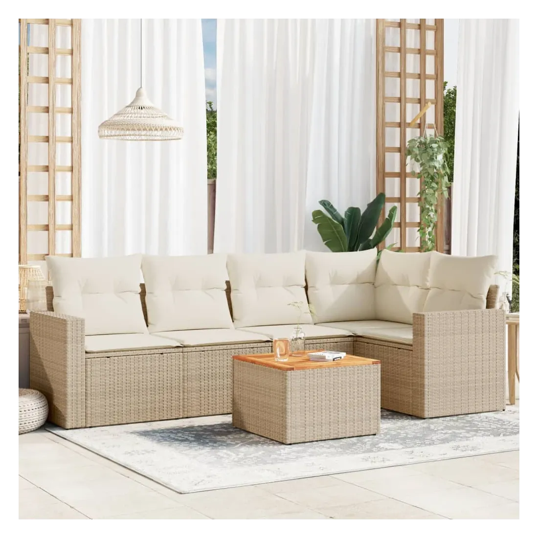Salon de jardin avec coussins 6 pcs beige résine tressée