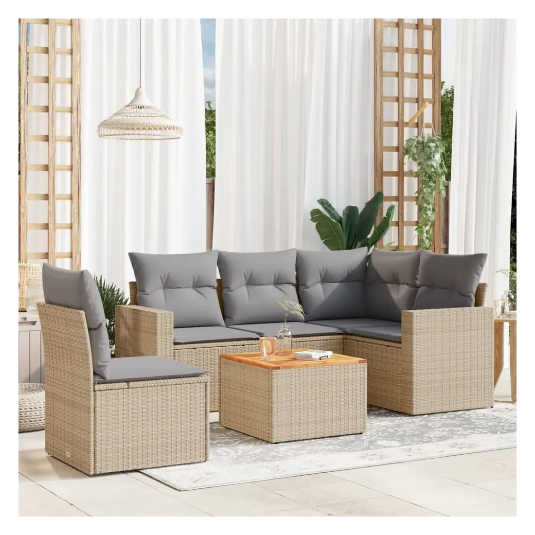 Cet ensemble de canapés de jardin est le complément parfait de votre arrière-cour, terrasse ou patio, offrant un espace confortable et accueillant pour discuter avec la famille et les amis ou simplement se détendre et profiter de l'extérieur. Matériau durable : la résine tressée, également connue sous le nom de poly rotin, est un matériau synthétique solide et nécessitant peu d'entretien qui ressemble au rotin naturel. Il est léger, facile à nettoyer et couramment utilisé pour les meubles d'extérieur en raison de sa durabilité et de ses propriétés de résistance aux intempéries.Expérience d'assise confortable : ce mobilier d'extérieur, doté de coussins épais, offre une expérience d'assise confortable.Dessus stable et facile à nettoyer : cette table de jardin a un dessus en bois d'acacia robuste, durable et facile à nettoyer avec un chiffon humide.Housse amovible et lavable : ces coussins de siège sont dotés de housses amovibles pour un lavage et un entretien faciles.Conception modulaire : cet ensemble de meubles d'extérieur a une conception modulaire, ce qui le rend complètement flexible et facile à déplacer, afin que vous puissiez créer un agencement de meubles d'extérieur personnalisé. Bon à savoir :Pour que vos meubles d'extérieur restent beaux, nous vous recommandons de les protéger avec une housse imperméable.