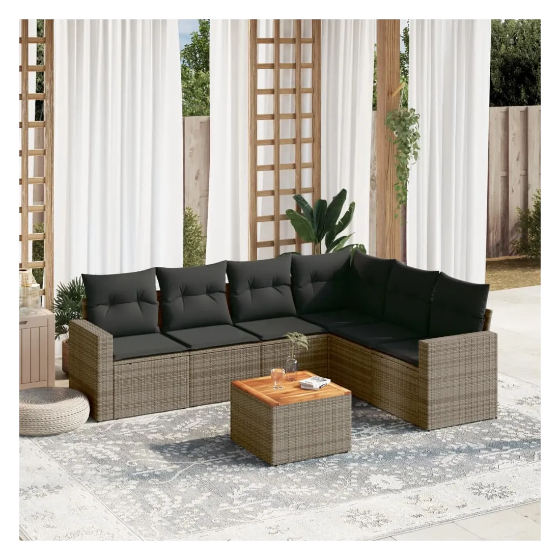 Salon de jardin avec coussins 7 pcs gris résine tressée