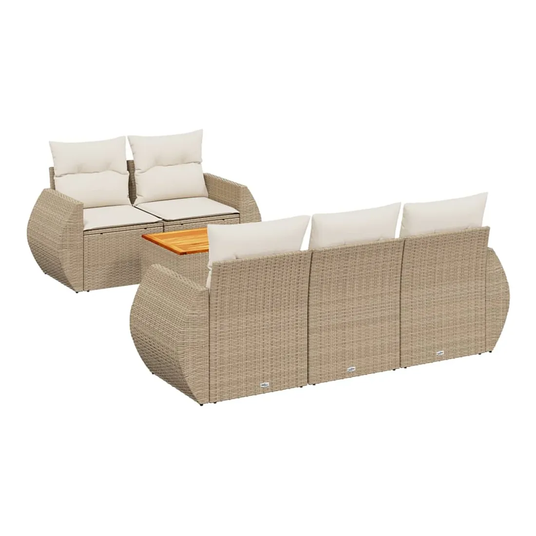 Cet ensemble de canapés de jardin est le complément parfait de votre arrière-cour, terrasse ou patio, offrant un espace confortable et accueillant pour discuter avec la famille et les amis ou simplement se détendre et profiter de l'extérieur. Matériau durable : la résine tressée, également connue sous le nom de poly rotin, est un matériau synthétique solide et nécessitant peu d'entretien qui ressemble au rotin naturel. Il est léger, facile à nettoyer et couramment utilisé pour les meubles d'extérieur en raison de sa durabilité et de ses propriétés de résistance aux intempéries.Dessus stable et facile à nettoyer : cette table de jardin a un dessus en bois d'acacia robuste, durable et facile à nettoyer avec un chiffon humide. Expérience d'assise confortable : ce mobilier d'extérieur, doté de coussins épais, offre une expérience d'assise confortable.Housse amovible et lavable : ces coussins de siège sont dotés de housses amovibles pour un lavage et un entretien faciles.Conception modulaire : cet ensemble de meubles d'extérieur a une conception modulaire, ce qui le rend complètement flexible et facile à déplacer, afin que vous puissiez créer un agencement de meubles d'extérieur personnalisé. Bon à savoir :Pour que vos meubles d'extérieur restent beaux, nous vous recommandons de les protéger avec une housse imperméable.