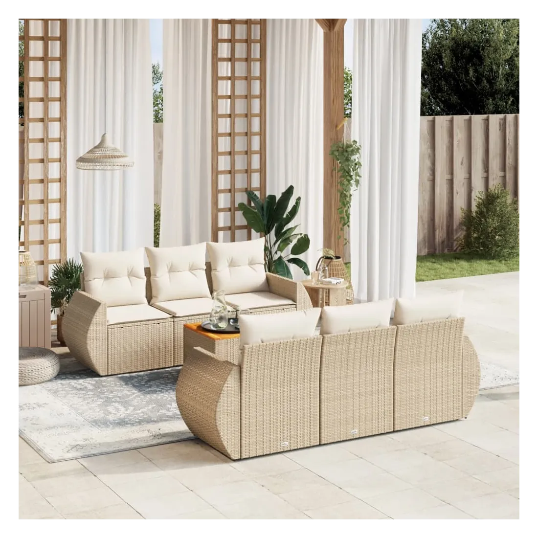 Cet ensemble de canapés de jardin est le complément parfait de votre arrière-cour, terrasse ou patio, offrant un espace confortable et accueillant pour discuter avec la famille et les amis ou simplement se détendre et profiter de l'extérieur. Matériau durable : la résine tressée, également connue sous le nom de poly rotin, est un matériau synthétique solide et nécessitant peu d'entretien qui ressemble au rotin naturel. Il est léger, facile à nettoyer et couramment utilisé pour les meubles d'extérieur en raison de sa durabilité et de ses propriétés de résistance aux intempéries.Dessus stable et facile à nettoyer : cette table de jardin a un dessus en bois d'acacia robuste, durable et facile à nettoyer avec un chiffon humide. Expérience d'assise confortable : ce mobilier d'extérieur, doté de coussins épais, offre une expérience d'assise confortable.Housse amovible et lavable : ces coussins de siège sont dotés de housses amovibles pour un lavage et un entretien faciles.Conception modulaire : cet ensemble de meubles d'extérieur a une conception modulaire, ce qui le rend complètement flexible et facile à déplacer, afin que vous puissiez créer un agencement de meubles d'extérieur personnalisé. Bon à savoir :Pour que vos meubles d'extérieur restent beaux, nous vous recommandons de les protéger avec une housse imperméable.