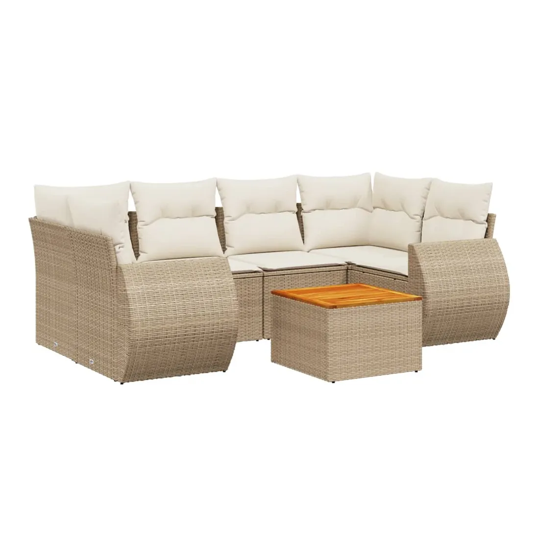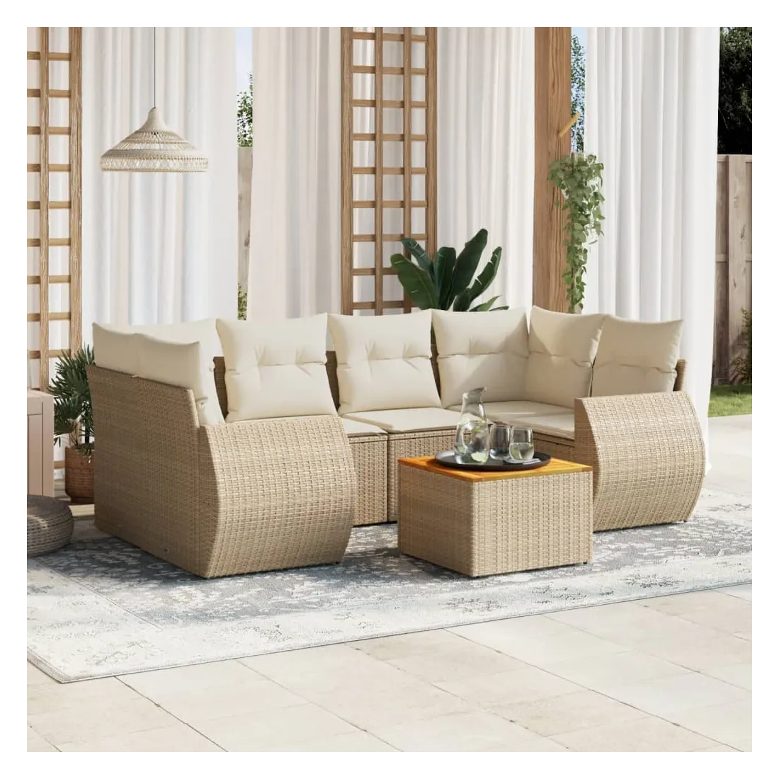 Cet ensemble de canapés de jardin est le complément parfait de votre arrière-cour, terrasse ou patio, offrant un espace confortable et accueillant pour discuter avec la famille et les amis ou simplement se détendre et profiter de l'extérieur. Matériau durable : la résine tressée, également connue sous le nom de poly rotin, est un matériau synthétique solide et nécessitant peu d'entretien qui ressemble au rotin naturel. Il est léger, facile à nettoyer et couramment utilisé pour les meubles d'extérieur en raison de sa durabilité et de ses propriétés de résistance aux intempéries.Dessus stable et facile à nettoyer : cette table de jardin a un dessus en bois d'acacia robuste, durable et facile à nettoyer avec un chiffon humide. Expérience d'assise confortable : ce mobilier d'extérieur, doté de coussins épais, offre une expérience d'assise confortable.Housse amovible et lavable : ces coussins de siège sont dotés de housses amovibles pour un lavage et un entretien faciles.Conception modulaire : cet ensemble de meubles d'extérieur a une conception modulaire, ce qui le rend complètement flexible et facile à déplacer, afin que vous puissiez créer un agencement de meubles d'extérieur personnalisé. Bon à savoir :Pour que vos meubles d'extérieur restent beaux, nous vous recommandons de les protéger avec une housse imperméable.