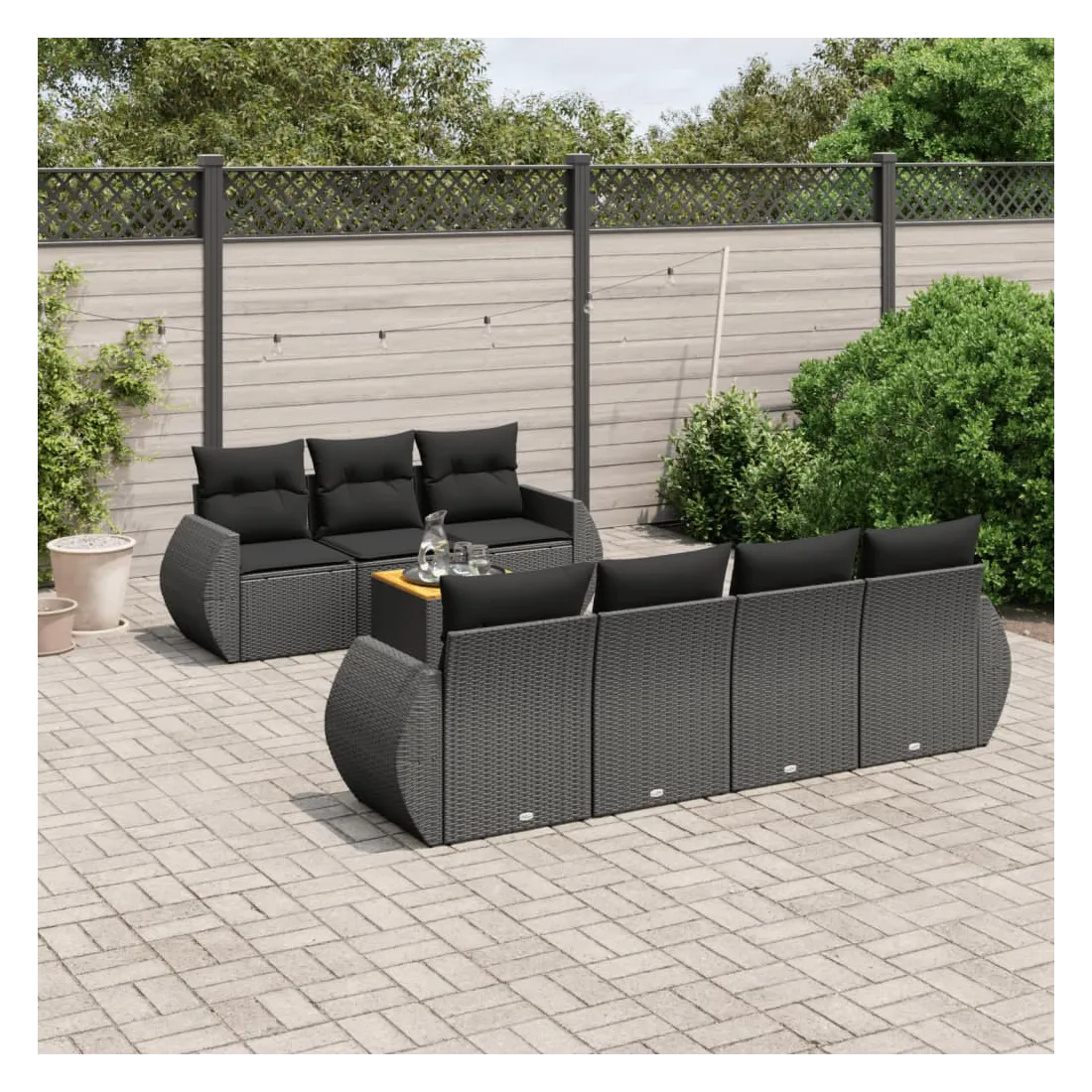 Cet ensemble de canapés de jardin est le complément parfait de votre arrière-cour, terrasse ou patio, offrant un espace confortable et accueillant pour discuter avec la famille et les amis ou simplement se détendre et profiter de l'extérieur. Matériau durable : la résine tressée, également connue sous le nom de poly rotin, est un matériau synthétique solide et nécessitant peu d'entretien qui ressemble au rotin naturel. Il est léger, facile à nettoyer et couramment utilisé pour les meubles d'extérieur en raison de sa durabilité et de ses propriétés de résistance aux intempéries.Dessus stable et facile à nettoyer : cette table de jardin a un dessus en bois d'acacia robuste, durable et facile à nettoyer avec un chiffon humide. Expérience d'assise confortable : ce mobilier d'extérieur, doté de coussins épais, offre une expérience d'assise confortable.Housse amovible et lavable : ces coussins de siège sont dotés de housses amovibles pour un lavage et un entretien faciles.Conception modulaire : cet ensemble de meubles d'extérieur a une conception modulaire, ce qui le rend complètement flexible et facile à déplacer, afin que vous puissiez créer un agencement de meubles d'extérieur personnalisé. Bon à savoir :Pour que vos meubles d'extérieur restent beaux, nous vous recommandons de les protéger avec une housse imperméable.