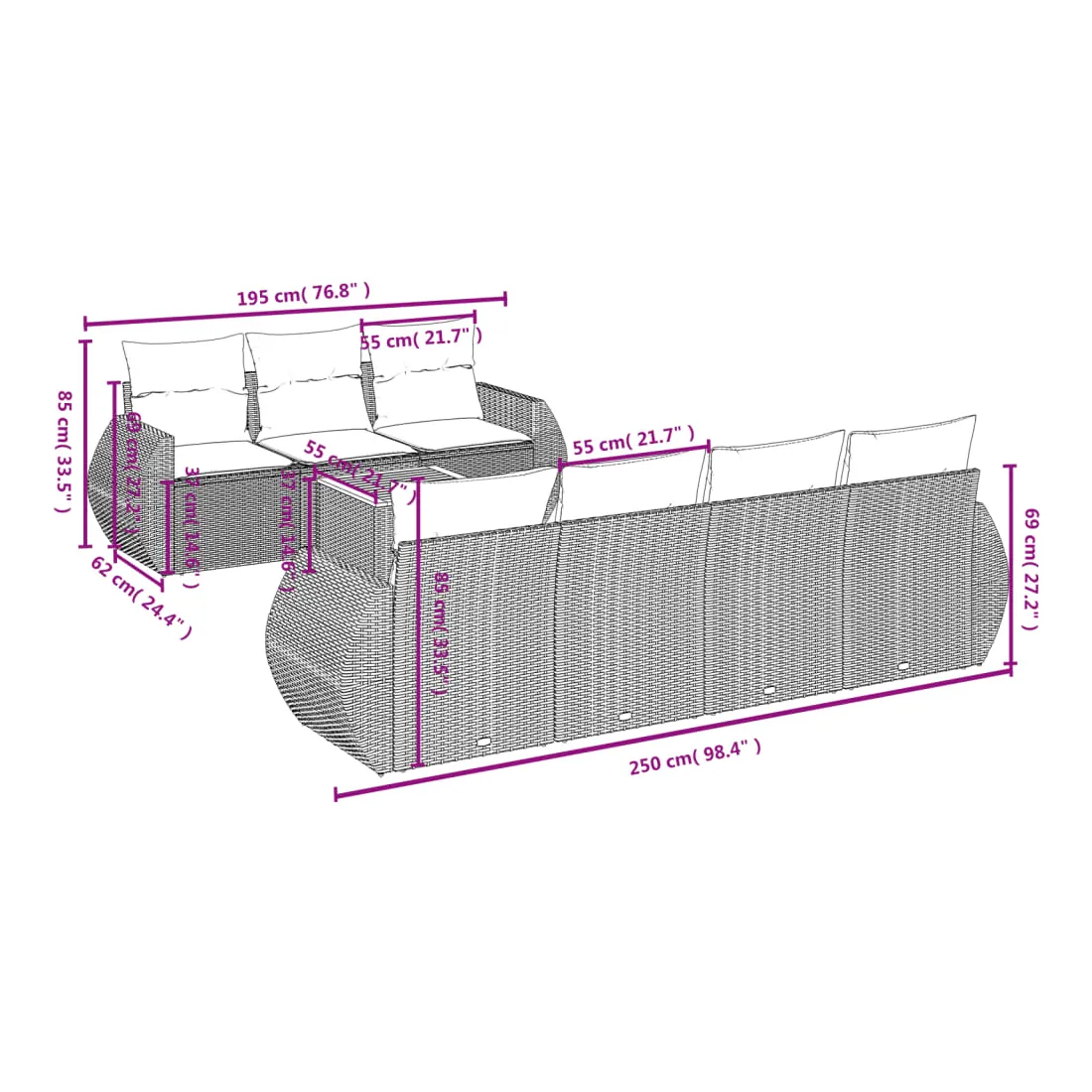 - Dimensions du coussin de dossier : 55 x 45 x 13 cm (L x l x é)