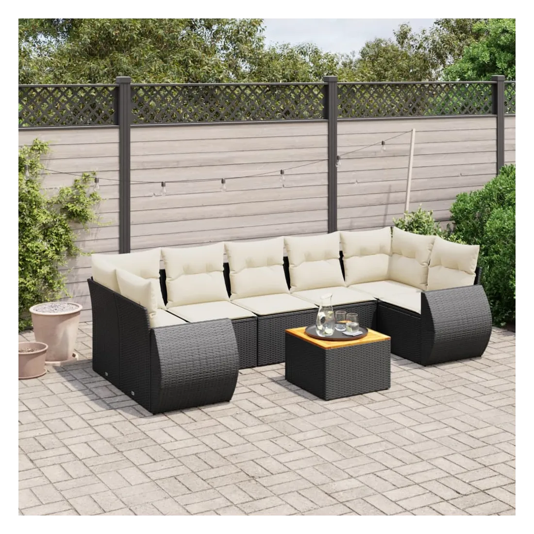 Cet ensemble de canapés de jardin est le complément parfait de votre arrière-cour, terrasse ou patio, offrant un espace confortable et accueillant pour discuter avec la famille et les amis ou simplement se détendre et profiter de l'extérieur. Matériau durable : la résine tressée, également connue sous le nom de poly rotin, est un matériau synthétique solide et nécessitant peu d'entretien qui ressemble au rotin naturel. Il est léger, facile à nettoyer et couramment utilisé pour les meubles d'extérieur en raison de sa durabilité et de ses propriétés de résistance aux intempéries.Dessus stable et facile à nettoyer : cette table de jardin a un dessus en bois d'acacia robuste, durable et facile à nettoyer avec un chiffon humide. Expérience d'assise confortable : ce mobilier d'extérieur, doté de coussins épais, offre une expérience d'assise confortable.Housse amovible et lavable : ces coussins de siège sont dotés de housses amovibles pour un lavage et un entretien faciles.Conception modulaire : cet ensemble de meubles d'extérieur a une conception modulaire, ce qui le rend complètement flexible et facile à déplacer, afin que vous puissiez créer un agencement de meubles d'extérieur personnalisé. Bon à savoir :Pour que vos meubles d'extérieur restent beaux, nous vous recommandons de les protéger avec une housse imperméable.