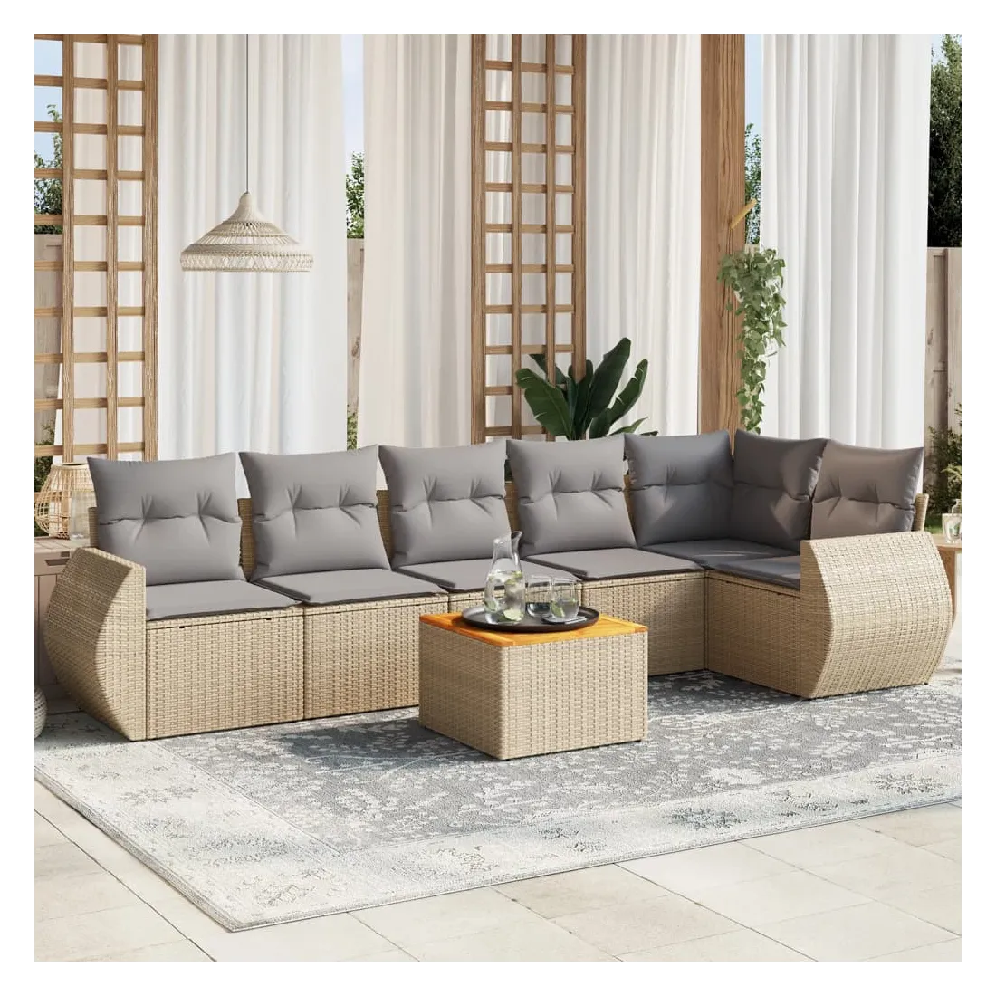 Salon de jardin avec coussins 7 pcs beige résine tressée
