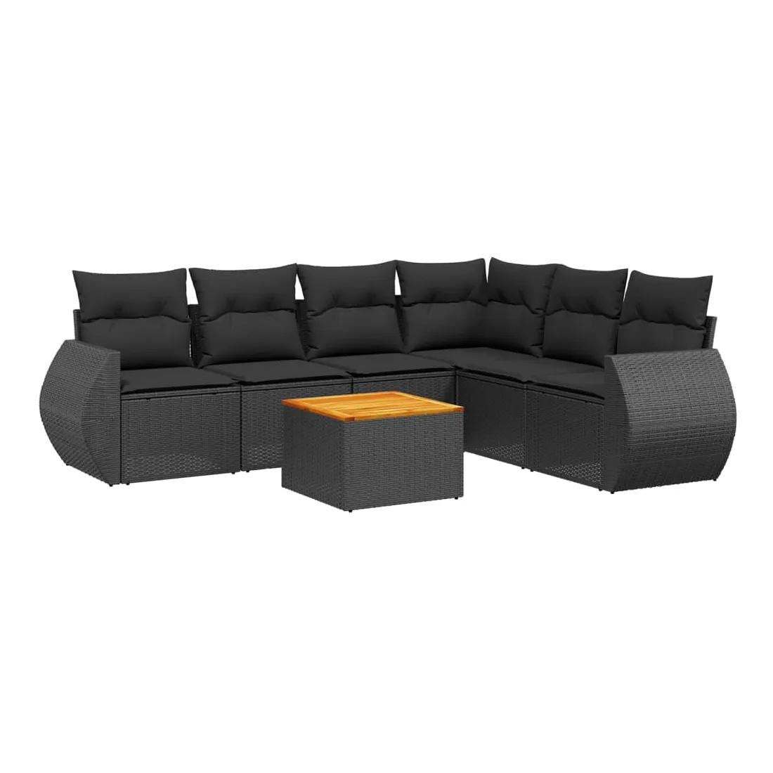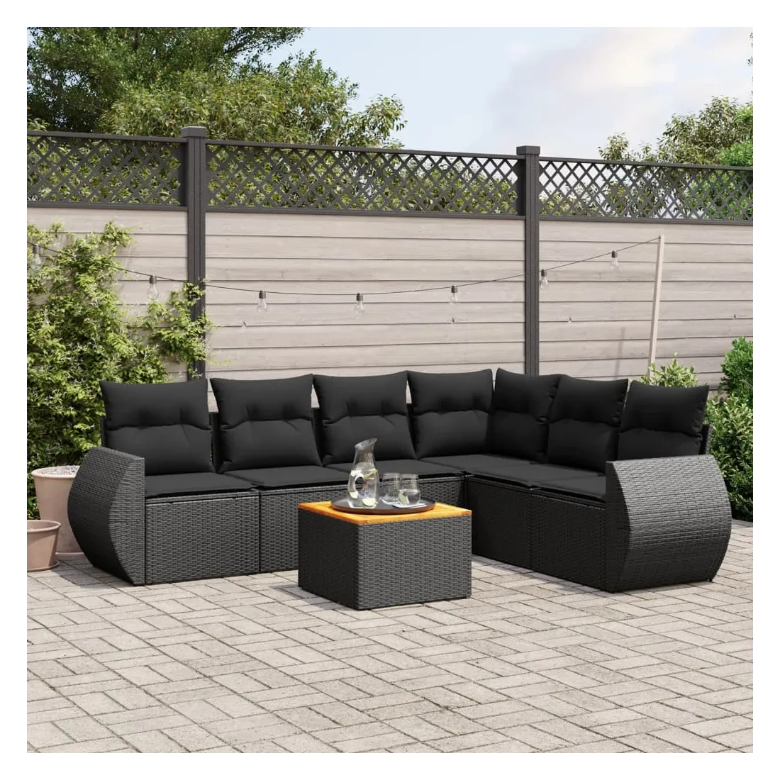 Salon de jardin 7 pcs avec coussins noir résine tressée