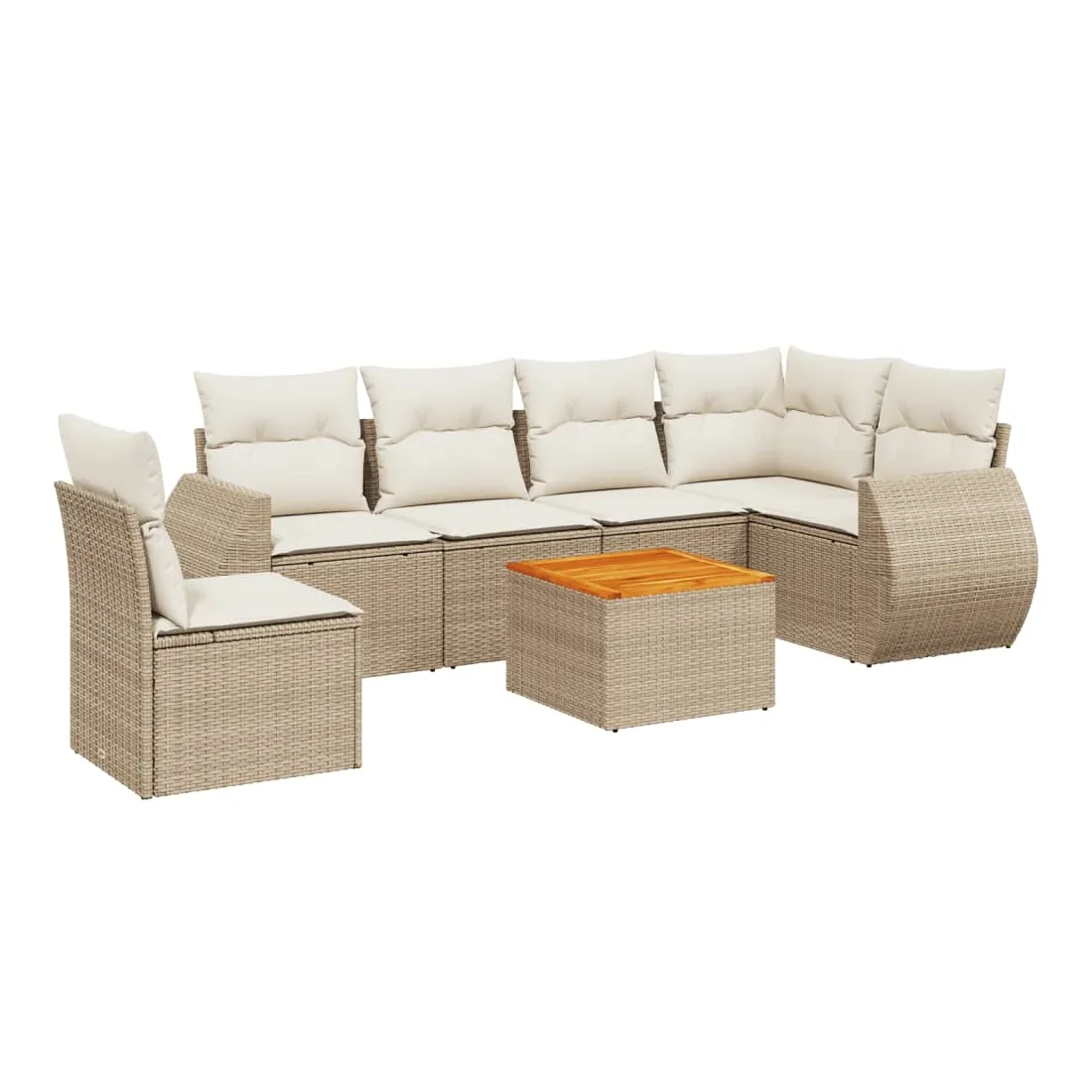 Salon de jardin avec coussins 7 pcs beige résine tressée