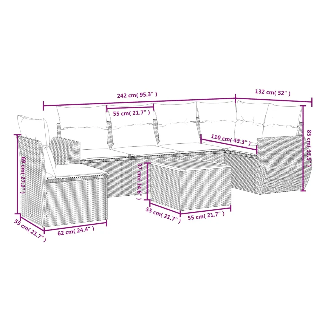• Dimensions du coussin de siège : 55 x 55 x 3 cm (l x P x é)