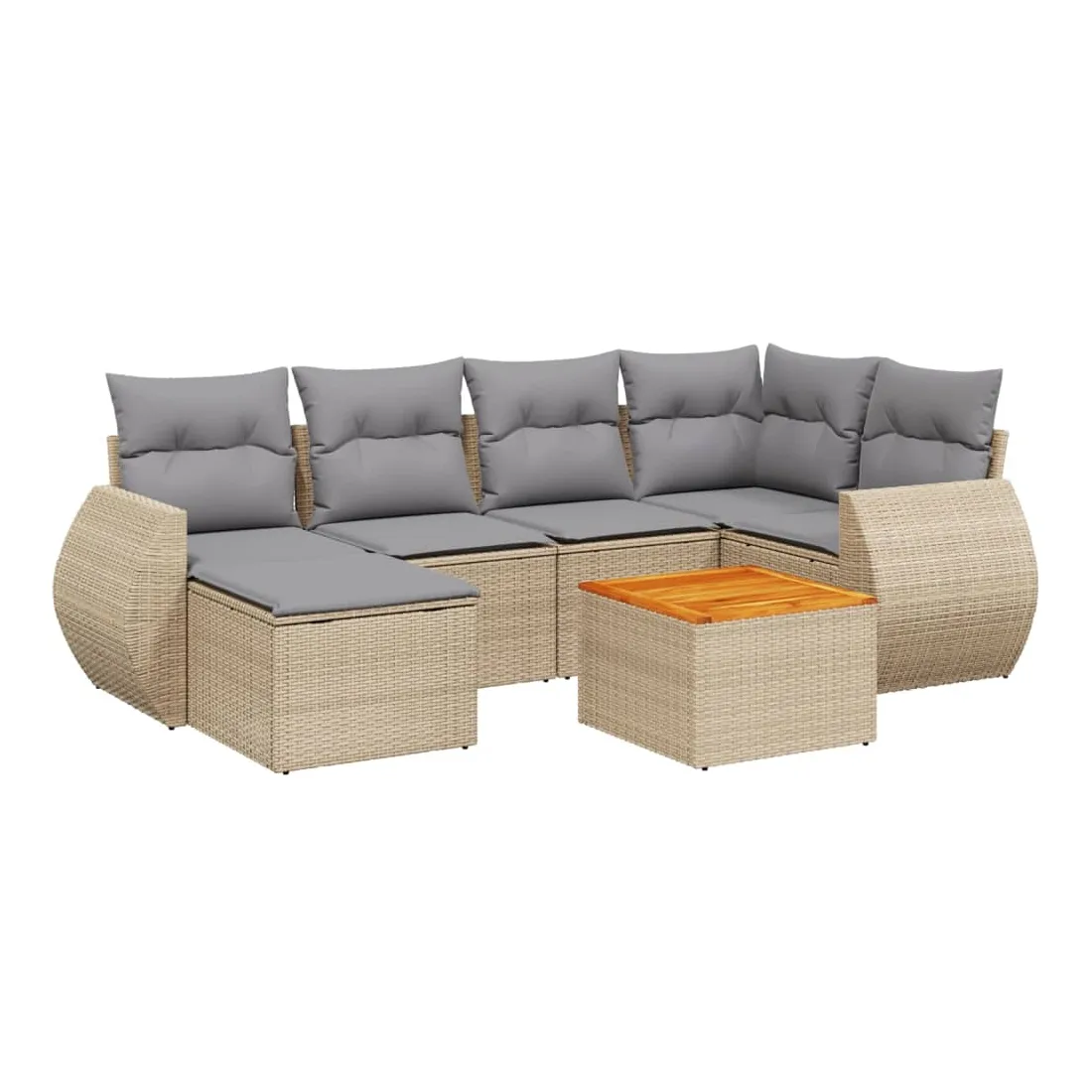 Cet ensemble de canapés de jardin est le complément parfait de votre arrière-cour, terrasse ou patio, offrant un espace confortable et accueillant pour discuter avec la famille et les amis ou simplement se détendre et profiter de l'extérieur. Matériau durable : la résine tressée, également connue sous le nom de poly rotin, est un matériau synthétique solide et nécessitant peu d'entretien qui ressemble au rotin naturel. Il est léger, facile à nettoyer et couramment utilisé pour les meubles d'extérieur en raison de sa durabilité et de ses propriétés de résistance aux intempéries.Dessus stable et facile à nettoyer : cette table de jardin a un dessus en bois d'acacia robuste, durable et facile à nettoyer avec un chiffon humide. Expérience d'assise confortable : ce mobilier d'extérieur, doté de coussins épais, offre une expérience d'assise confortable.Housse amovible et lavable : ces coussins de siège sont dotés de housses amovibles pour un lavage et un entretien faciles.Conception modulaire : cet ensemble de meubles d'extérieur a une conception modulaire, ce qui le rend complètement flexible et facile à déplacer, afin que vous puissiez créer un agencement de meubles d'extérieur personnalisé. Bon à savoir :Pour que vos meubles d'extérieur restent beaux, nous vous recommandons de les protéger avec une housse imperméable.