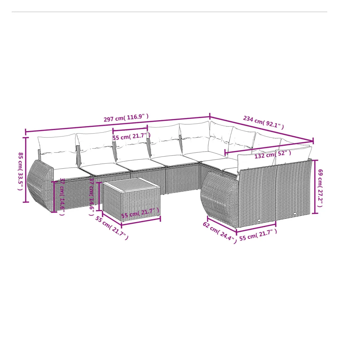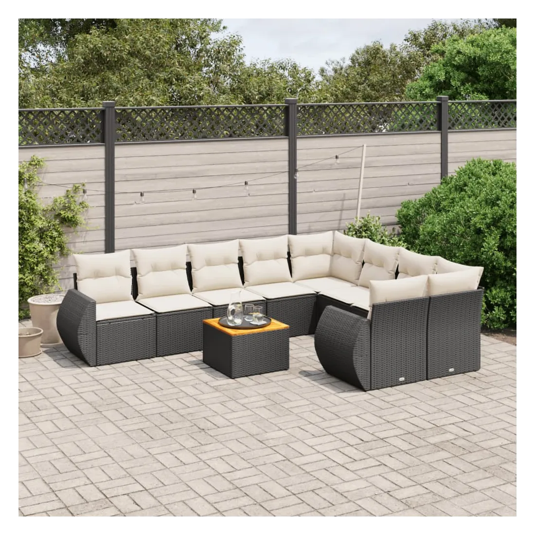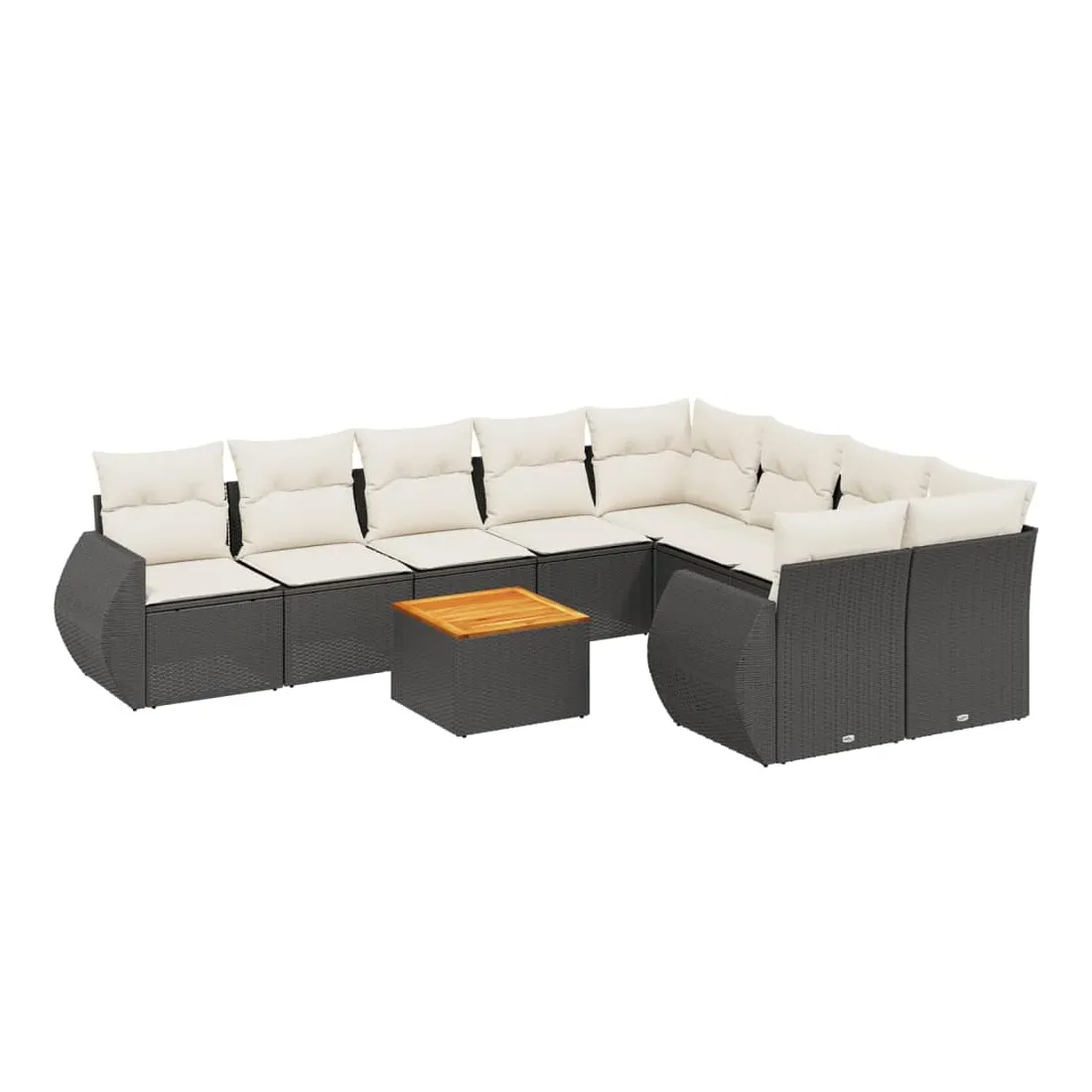 Salon de jardin 10 pcs avec coussins noir résine tressée