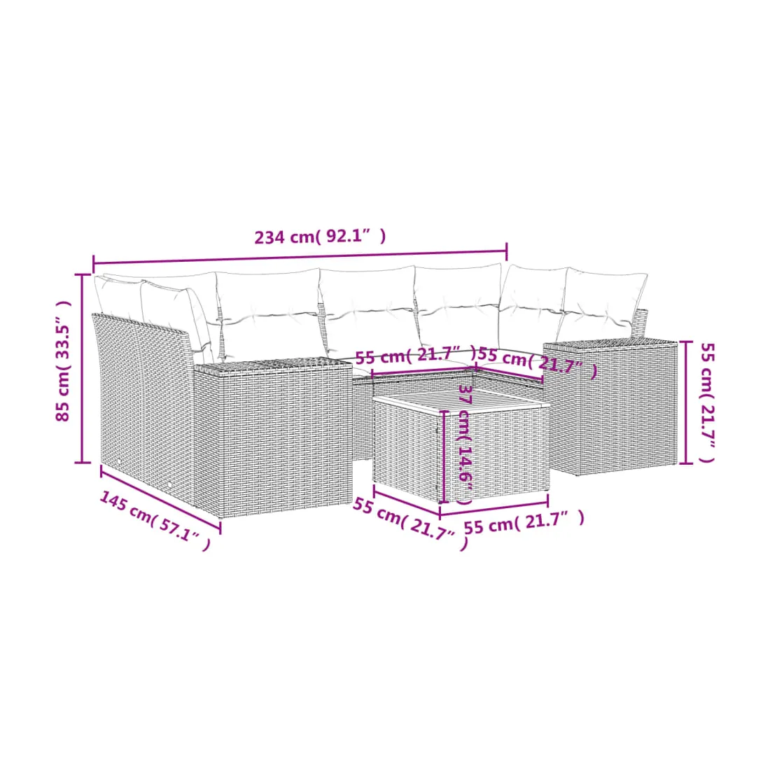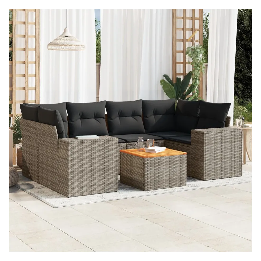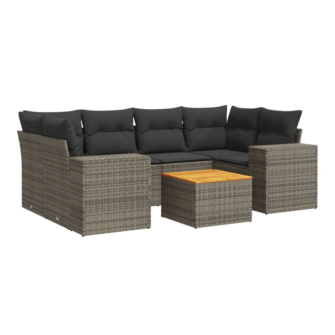 Cet ensemble de canapés de jardin est le complément parfait de votre arrière-cour, terrasse ou patio, offrant un espace confortable et accueillant pour discuter avec la famille et les amis ou simplement se détendre et profiter de l'extérieur. Matériau durable : la résine tressée, également connue sous le nom de poly rotin, est un matériau synthétique solide et nécessitant peu d'entretien qui ressemble au rotin naturel. Il est léger, facile à nettoyer et couramment utilisé pour les meubles d'extérieur en raison de sa durabilité et de ses propriétés de résistance aux intempéries.Dessus stable et facile à nettoyer : cette table de jardin a un dessus en bois d'acacia robuste, durable et facile à nettoyer avec un chiffon humide. Expérience d'assise confortable : ce mobilier d'extérieur, doté de coussins épais, offre une expérience d'assise confortable.Housse amovible et lavable : ces coussins de siège sont dotés de housses amovibles pour un lavage et un entretien faciles.Conception modulaire : cet ensemble de meubles d'extérieur a une conception modulaire, ce qui le rend complètement flexible et facile à déplacer, afin que vous puissiez créer un agencement de meubles d'extérieur personnalisé. Bon à savoir :Pour que vos meubles d'extérieur restent beaux, nous vous recommandons de les protéger avec une housse imperméable.
