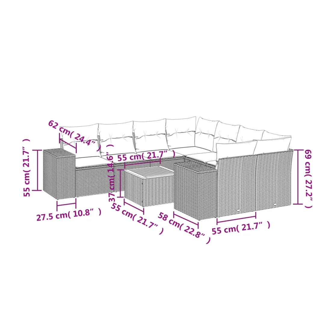 Cet ensemble de canapés de jardin est le complément parfait de votre arrière-cour, terrasse ou patio, offrant un espace confortable et accueillant pour discuter avec la famille et les amis ou simplement se détendre et profiter de l'extérieur. Matériau durable : la résine tressée, également connue sous le nom de poly rotin, est un matériau synthétique solide et nécessitant peu d'entretien qui ressemble au rotin naturel. Il est léger, facile à nettoyer et couramment utilisé pour les meubles d'extérieur en raison de sa durabilité et de ses propriétés de résistance aux intempéries.Dessus stable et facile à nettoyer : cette table de jardin a un dessus en bois d'acacia robuste, durable et facile à nettoyer avec un chiffon humide. Expérience d'assise confortable : ce mobilier d'extérieur, doté de coussins épais, offre une expérience d'assise confortable.Housse amovible et lavable : ces coussins de siège sont dotés de housses amovibles pour un lavage et un entretien faciles.Conception modulaire : cet ensemble de meubles d'extérieur a une conception modulaire, ce qui le rend complètement flexible et facile à déplacer, afin que vous puissiez créer un agencement de meubles d'extérieur personnalisé. Bon à savoir :Pour que vos meubles d'extérieur restent beaux, nous vous recommandons de les protéger avec une housse imperméable.