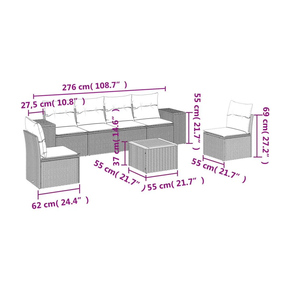 - Dimensions du coussin de siège : 55 x 55 x 3 cm (l x P x é)