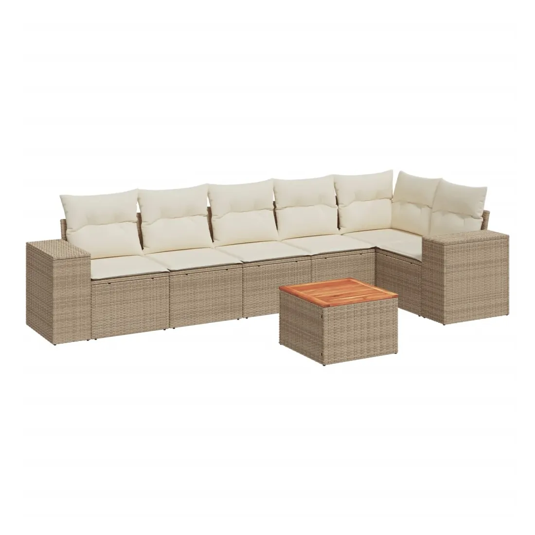 Cet ensemble de canapés de jardin est le complément parfait de votre arrière-cour, terrasse ou patio, offrant un espace confortable et accueillant pour discuter avec la famille et les amis ou simplement se détendre et profiter de l'extérieur. Matériau durable : la résine tressée, également connue sous le nom de poly rotin, est un matériau synthétique solide et nécessitant peu d'entretien qui ressemble au rotin naturel. Il est léger, facile à nettoyer et couramment utilisé pour les meubles d'extérieur en raison de sa durabilité et de ses propriétés de résistance aux intempéries.Dessus stable et facile à nettoyer : cette table de jardin a un dessus en bois d'acacia robuste, durable et facile à nettoyer avec un chiffon humide. Expérience d'assise confortable : ce mobilier d'extérieur, doté de coussins épais, offre une expérience d'assise confortable. Housse amovible et lavable : ces coussins de siège sont dotés de housses amovibles pour un lavage et un entretien faciles.Conception modulaire : cet ensemble de meubles d'extérieur a une conception modulaire, ce qui le rend complètement flexible et facile à déplacer, afin que vous puissiez créer un agencement de meubles d'extérieur personnalisé. Bon à savoir :Pour que vos meubles d'extérieur restent beaux, nous vous recommandons de les protéger avec une housse imperméable.