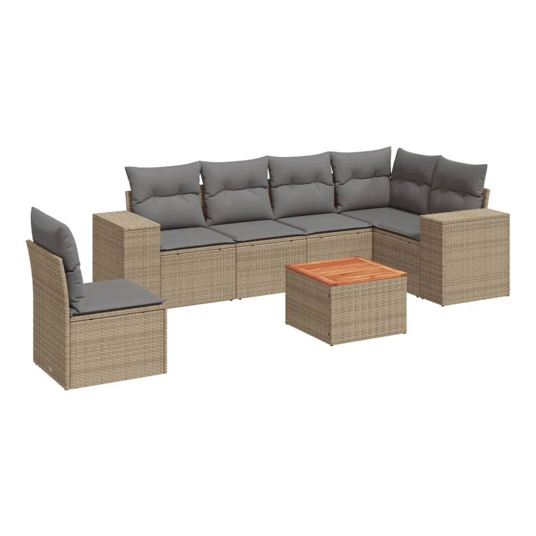 Cet ensemble de canapés de jardin est le complément parfait de votre arrière-cour, terrasse ou patio, offrant un espace confortable et accueillant pour discuter avec la famille et les amis ou simplement se détendre et profiter de l'extérieur. Matériau durable : la résine tressée, également connue sous le nom de poly rotin, est un matériau synthétique solide et nécessitant peu d'entretien qui ressemble au rotin naturel. Il est léger, facile à nettoyer et couramment utilisé pour les meubles d'extérieur en raison de sa durabilité et de ses propriétés de résistance aux intempéries.Dessus stable et facile à nettoyer : cette table de jardin a un dessus en bois d'acacia robuste, durable et facile à nettoyer avec un chiffon humide. Expérience d'assise confortable : ce mobilier d'extérieur, doté de coussins épais, offre une expérience d'assise confortable. Housse amovible et lavable : ces coussins de siège sont dotés de housses amovibles pour un lavage et un entretien faciles.Conception modulaire : cet ensemble de meubles d'extérieur a une conception modulaire, ce qui le rend complètement flexible et facile à déplacer, afin que vous puissiez créer un agencement de meubles d'extérieur personnalisé. Bon à savoir :Pour que vos meubles d'extérieur restent beaux, nous vous recommandons de les protéger avec une housse imperméable.