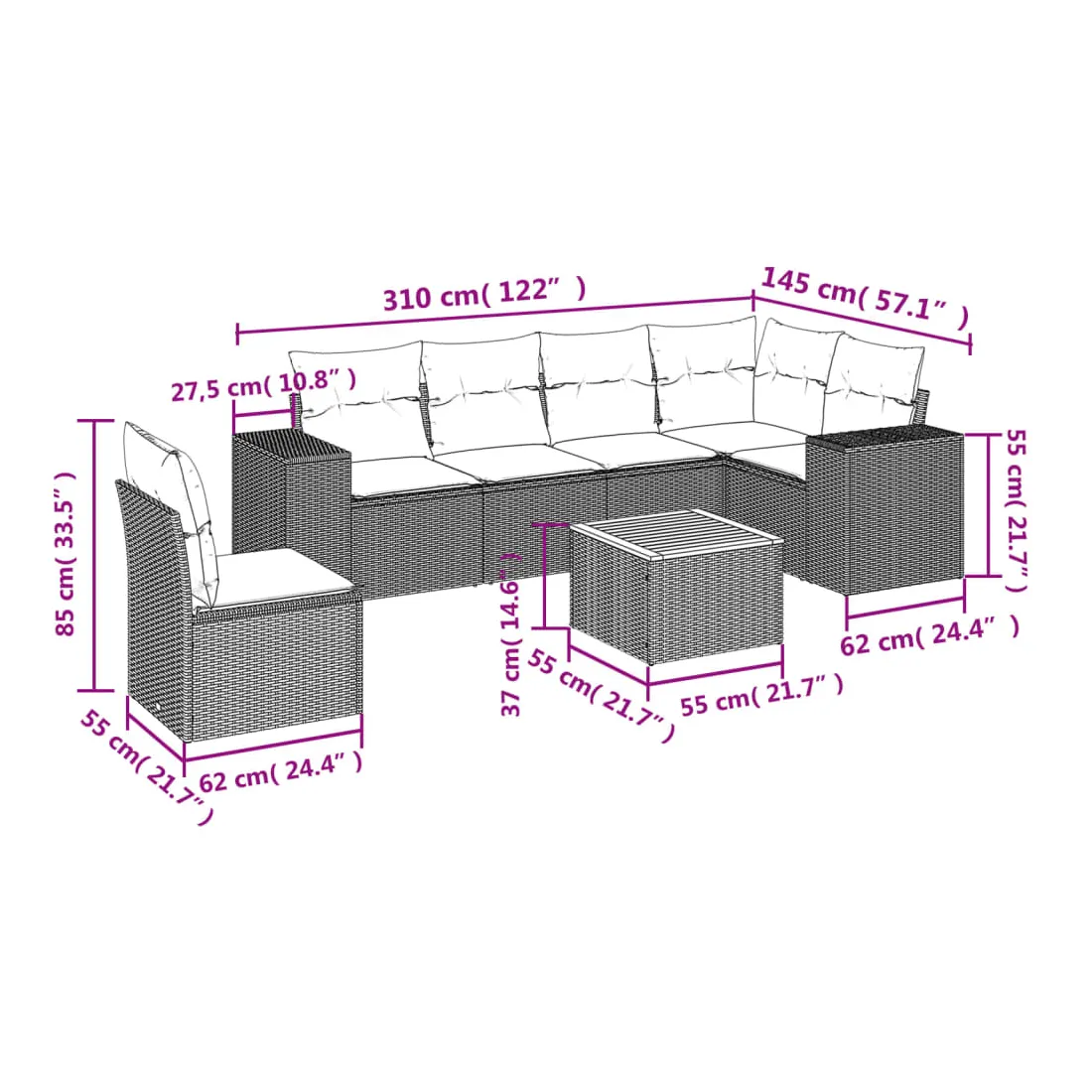 Salon de jardin avec coussins 7 pcs gris résine tressée