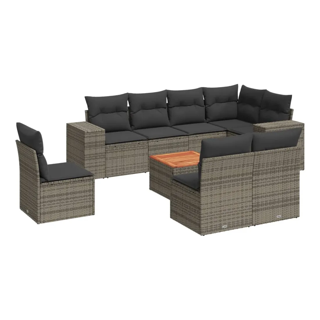 Cet ensemble de canapés de jardin est le complément parfait de votre arrière-cour, terrasse ou patio, offrant un espace confortable et accueillant pour discuter avec la famille et les amis ou simplement se détendre et profiter de l'extérieur. Matériau durable : la résine tressée, également connue sous le nom de poly rotin, est un matériau synthétique solide et nécessitant peu d'entretien qui ressemble au rotin naturel. Il est léger, facile à nettoyer et couramment utilisé pour les meubles d'extérieur en raison de sa durabilité et de ses propriétés de résistance aux intempéries.Dessus stable et facile à nettoyer : cette table de jardin a un dessus en bois d'acacia robuste, durable et facile à nettoyer avec un chiffon humide. Expérience d'assise confortable : ce mobilier d'extérieur, doté de coussins épais, offre une expérience d'assise confortable. Housse amovible et lavable : ces coussins de siège sont dotés de housses amovibles pour un lavage et un entretien faciles.Conception modulaire : cet ensemble de meubles d'extérieur a une conception modulaire, ce qui le rend complètement flexible et facile à déplacer, afin que vous puissiez créer un agencement de meubles d'extérieur personnalisé. Bon à savoir :Pour que vos meubles d'extérieur restent beaux, nous vous recommandons de les protéger avec une housse imperméable.