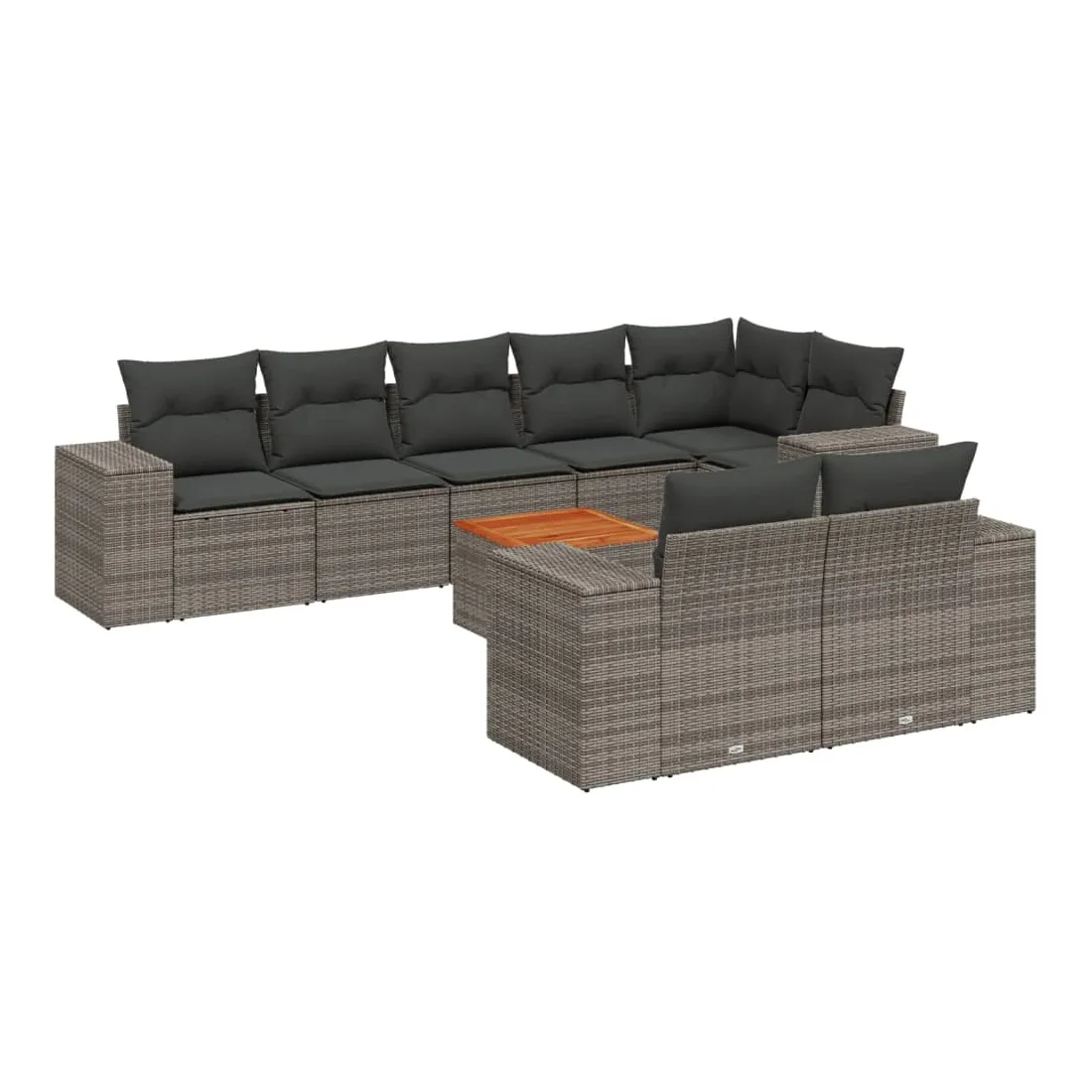 Cet ensemble de canapés de jardin est le complément parfait de votre arrière-cour, terrasse ou patio, offrant un espace confortable et accueillant pour discuter avec la famille et les amis ou simplement se détendre et profiter de l'extérieur. Matériau durable : la résine tressée, également connue sous le nom de poly rotin, est un matériau synthétique solide et nécessitant peu d'entretien qui ressemble au rotin naturel. Il est léger, facile à nettoyer et couramment utilisé pour les meubles d'extérieur en raison de sa durabilité et de ses propriétés de résistance aux intempéries.Dessus stable et facile à nettoyer : cette table de jardin a un dessus en bois d'acacia robuste, durable et facile à nettoyer avec un chiffon humide. Expérience d'assise confortable : ce mobilier d'extérieur, doté de coussins épais, offre une expérience d'assise confortable.Housse amovible et lavable : ces coussins de siège sont dotés de housses amovibles pour un lavage et un entretien faciles.Conception modulaire : cet ensemble de meubles d'extérieur a une conception modulaire, ce qui le rend complètement flexible et facile à déplacer, afin que vous puissiez créer un agencement de meubles d'extérieur personnalisé. Bon à savoir :Pour que vos meubles d'extérieur restent beaux, nous vous recommandons de les protéger avec une housse imperméable.