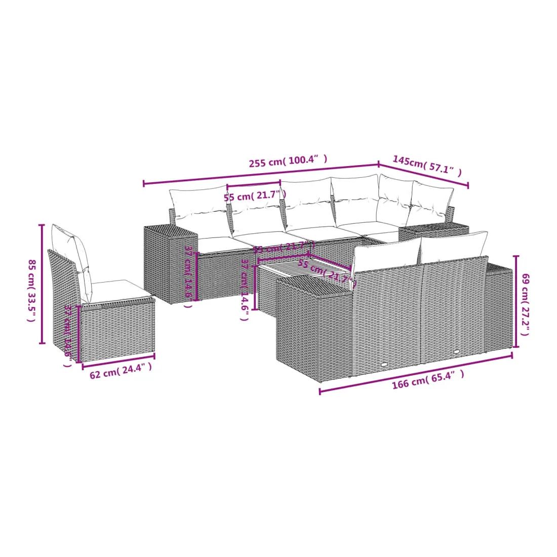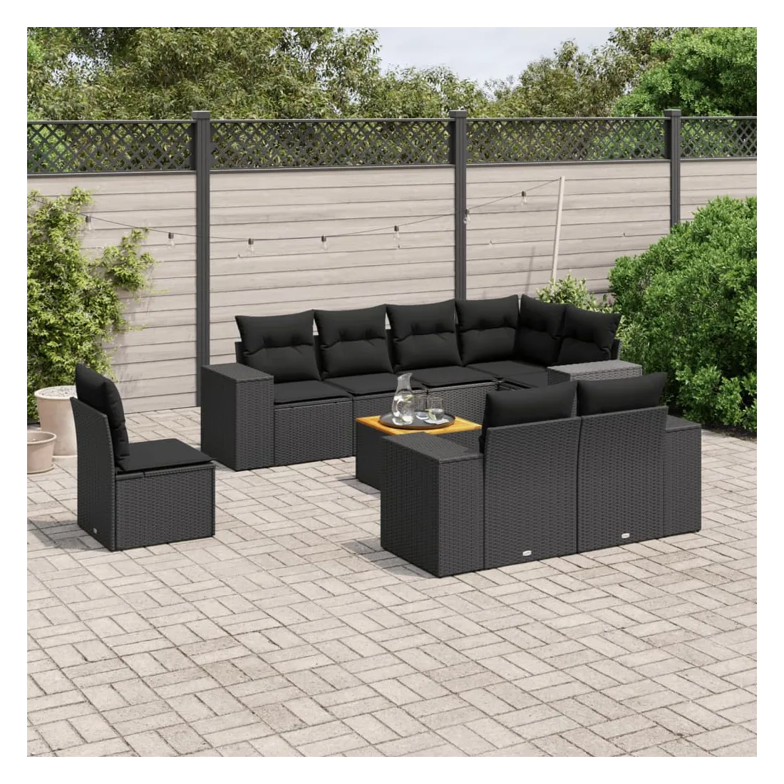 Cet ensemble de canapés de jardin est le complément parfait de votre arrière-cour, terrasse ou patio, offrant un espace confortable et accueillant pour discuter avec la famille et les amis ou simplement se détendre et profiter de l'extérieur. Matériau durable : la résine tressée, également connue sous le nom de poly rotin, est un matériau synthétique solide et nécessitant peu d'entretien qui ressemble au rotin naturel. Il est léger, facile à nettoyer et couramment utilisé pour les meubles d'extérieur en raison de sa durabilité et de ses propriétés de résistance aux intempéries.Dessus stable et facile à nettoyer : cette table de jardin a un dessus en bois d'acacia robuste, durable et facile à nettoyer avec un chiffon humide. Expérience d'assise confortable : ce mobilier d'extérieur, doté de coussins épais, offre une expérience d'assise confortable.Housse amovible et lavable : ces coussins de siège sont dotés de housses amovibles pour un lavage et un entretien faciles.Conception modulaire : cet ensemble de meubles d'extérieur a une conception modulaire, ce qui le rend complètement flexible et facile à déplacer, afin que vous puissiez créer un agencement de meubles d'extérieur personnalisé. Bon à savoir :Pour que vos meubles d'extérieur restent beaux, nous vous recommandons de les protéger avec une housse imperméable.