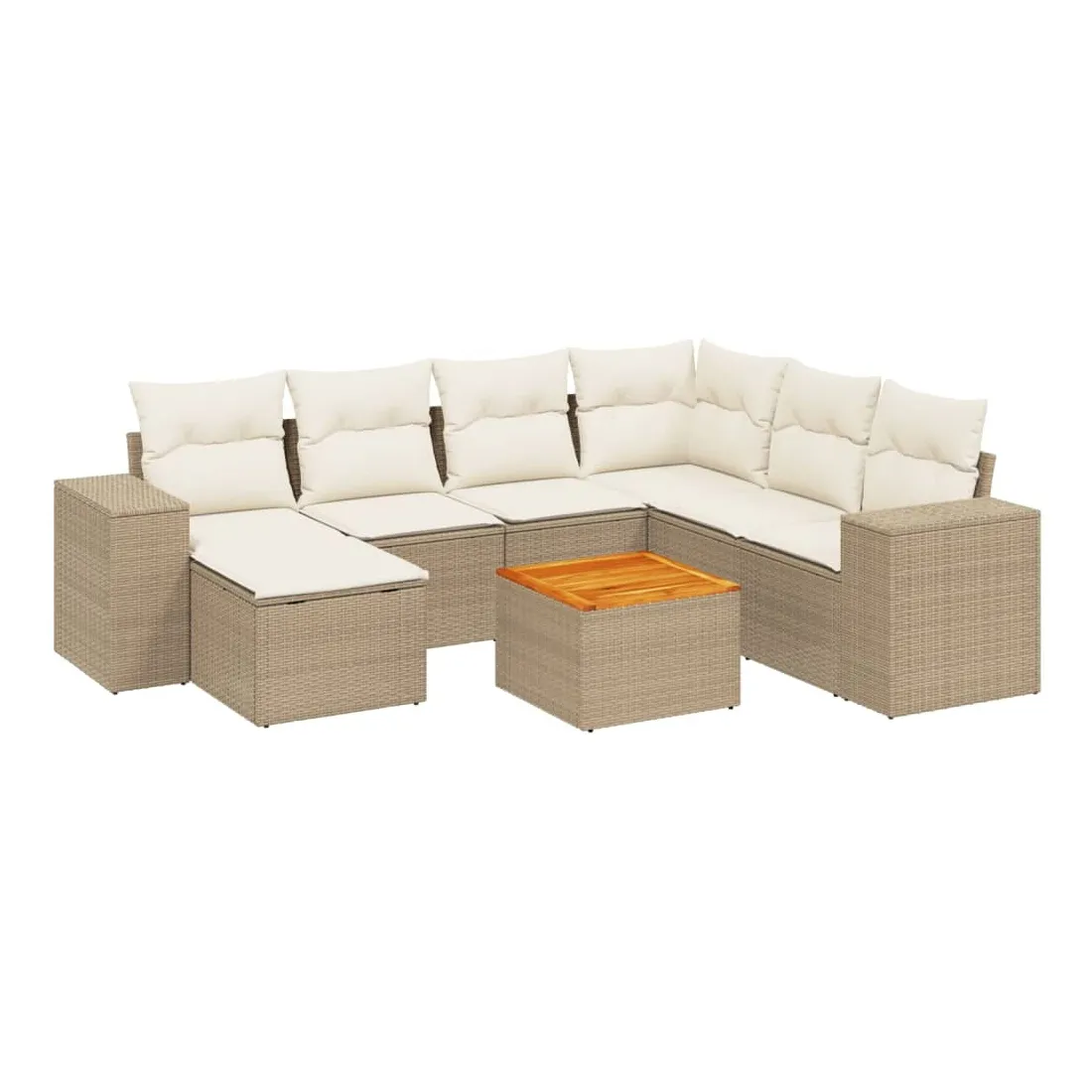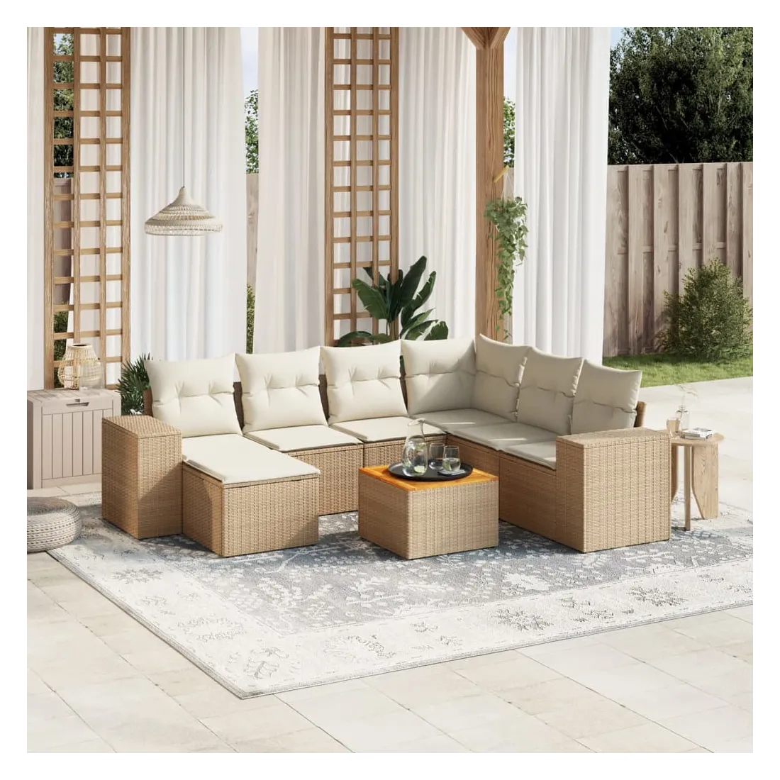 Cet ensemble de canapés de jardin est le complément parfait de votre arrière-cour, terrasse ou patio, offrant un espace confortable et accueillant pour discuter avec la famille et les amis ou simplement se détendre et profiter de l'extérieur. Matériau durable : la résine tressée, également connue sous le nom de poly rotin, est un matériau synthétique solide et nécessitant peu d'entretien qui ressemble au rotin naturel. Il est léger, facile à nettoyer et couramment utilisé pour les meubles d'extérieur en raison de sa durabilité et de ses propriétés de résistance aux intempéries.Dessus stable et facile à nettoyer : cette table de jardin a un dessus en bois d'acacia robuste, durable et facile à nettoyer avec un chiffon humide. Expérience d'assise confortable : ce mobilier d'extérieur, doté de coussins épais, offre une expérience d'assise confortable.Housse amovible et lavable : ces coussins de siège sont dotés de housses amovibles pour un lavage et un entretien faciles.Conception modulaire : cet ensemble de meubles d'extérieur a une conception modulaire, ce qui le rend complètement flexible et facile à déplacer, afin que vous puissiez créer un agencement de meubles d'extérieur personnalisé. Bon à savoir :Pour que vos meubles d'extérieur restent beaux, nous vous recommandons de les protéger avec une housse imperméable.