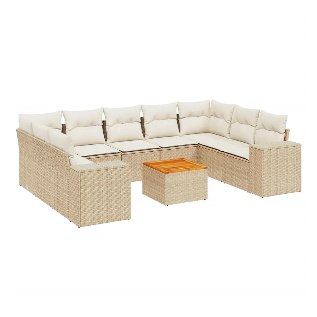 Salon de jardin avec coussins 10 pcs beige résine tressée