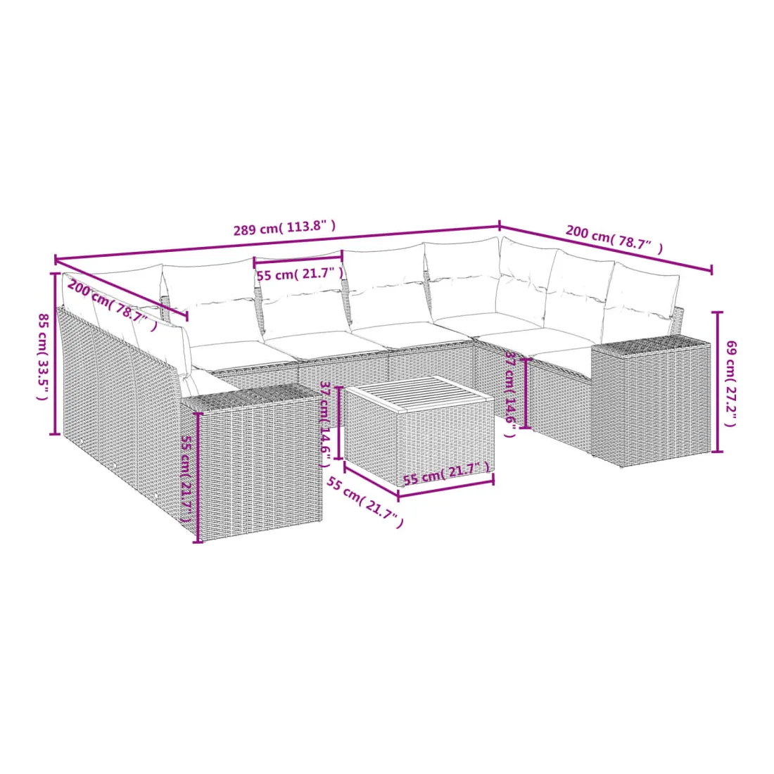 • Dimensions : 55 x 55 x 37 cm (L x l x H)