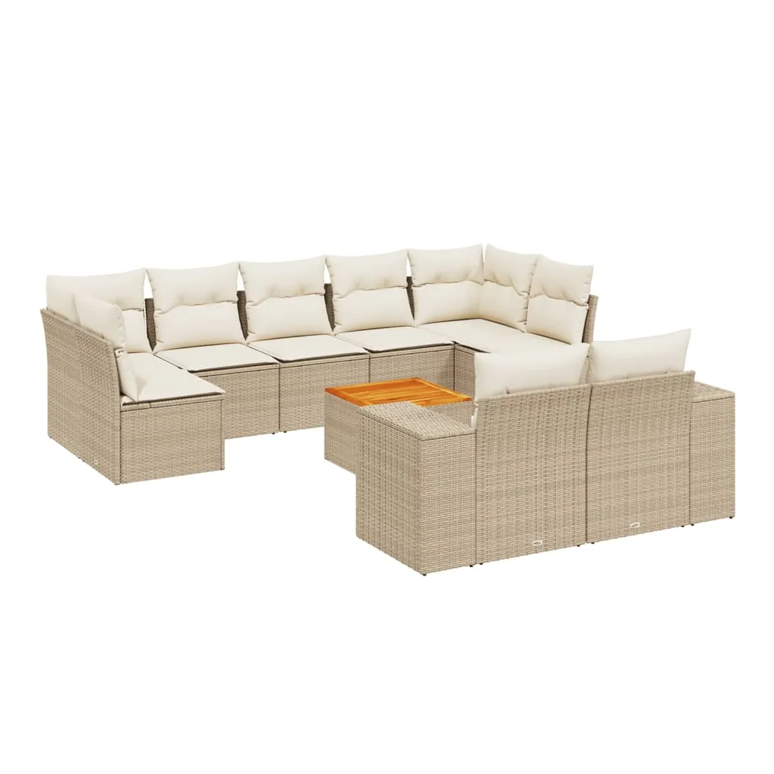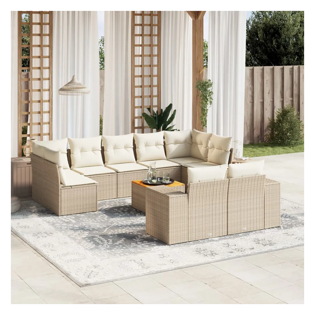 Cet ensemble de canapés de jardin est le complément parfait de votre arrière-cour, terrasse ou patio, offrant un espace confortable et accueillant pour discuter avec la famille et les amis ou simplement se détendre et profiter de l'extérieur. Matériau durable : la résine tressée, également connue sous le nom de poly rotin, est un matériau synthétique solide et nécessitant peu d'entretien qui ressemble au rotin naturel. Il est léger, facile à nettoyer et couramment utilisé pour les meubles d'extérieur en raison de sa durabilité et de ses propriétés de résistance aux intempéries.Dessus stable et facile à nettoyer : cette table de jardin a un dessus en bois d'acacia robuste, durable et facile à nettoyer avec un chiffon humide. Expérience d'assise confortable : ce mobilier d'extérieur, doté de coussins épais, offre une expérience d'assise confortable.Housse amovible et lavable : ces coussins de siège sont dotés de housses amovibles pour un lavage et un entretien faciles.Conception modulaire : cet ensemble de meubles d'extérieur a une conception modulaire, ce qui le rend complètement flexible et facile à déplacer, afin que vous puissiez créer un agencement de meubles d'extérieur personnalisé. Bon à savoir :Pour que vos meubles d'extérieur restent beaux, nous vous recommandons de les protéger avec une housse imperméable.