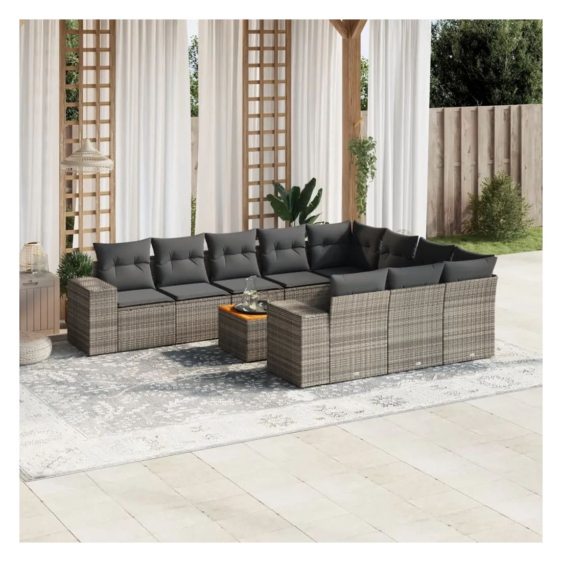 Salon de jardin 11 pcs avec coussins gris résine tressée