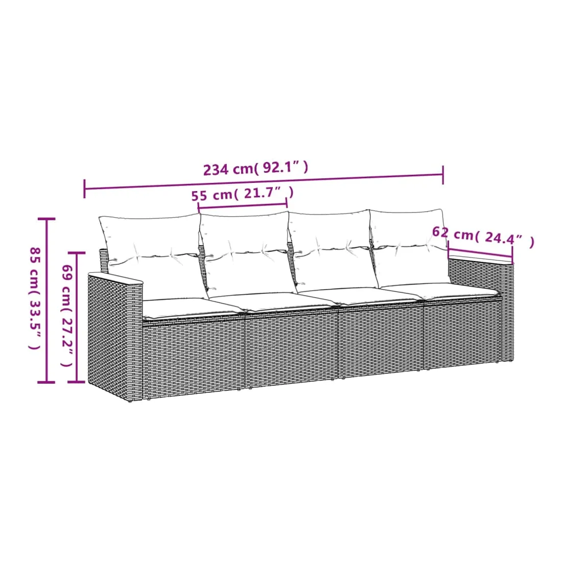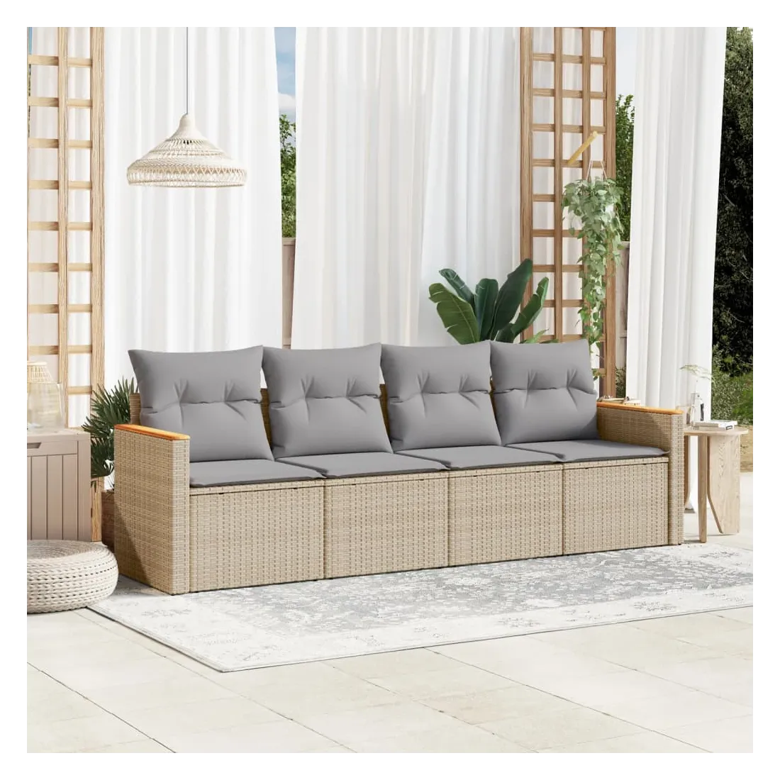 Cet ensemble de canapés de jardin est le complément parfait de votre arrière-cour, terrasse ou patio, offrant un espace confortable et accueillant pour discuter avec la famille et les amis ou simplement se détendre et profiter de l'extérieur. Matériau durable : la résine tressée, également connue sous le nom de poly rotin, est un matériau synthétique solide et nécessitant peu d'entretien qui ressemble au rotin naturel. Il est léger, facile à nettoyer et couramment utilisé pour les meubles d'extérieur en raison de sa durabilité et de ses propriétés de résistance aux intempéries.Housse amovible et lavable : ces coussins de siège sont dotés de housses amovibles pour un lavage et un entretien faciles.Cadre robuste et stable : le cadre en acier enduit de poudre assure la solidité et la stabilité du meuble de jardin pour une utilisation quotidienne à l'extérieur.Conception modulaire : cet ensemble de meubles d'extérieur a une conception modulaire, ce qui le rend complètement flexible et facile à déplacer, afin que vous puissiez créer un agencement de meubles d'extérieur personnalisé. Bon à savoir :Pour que vos meubles d'extérieur restent beaux, nous vous recommandons de les protéger avec une housse imperméable.